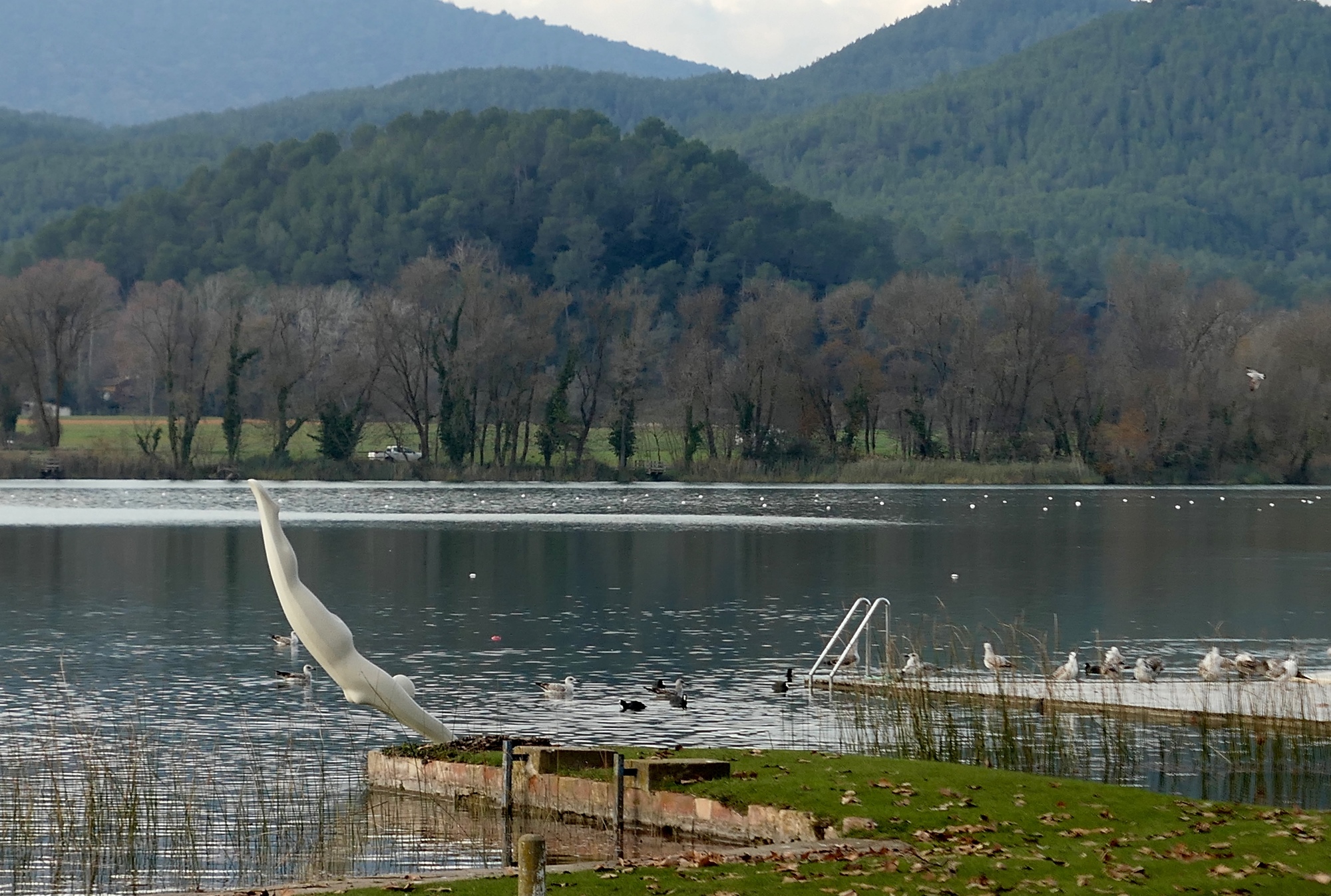 So, we’re back in Girona, it’s nearly 1:30 already and we’re just starting out on a 30 mile loop. We want to get a ride in, so there’s not much time for photostops. I don’t take a single photo until we reach our halfway point, the lake at Banyoles. Which is fine - I might not have stopped that much on the way out anyway, because the direct ride to Banyoles isn’t that scenic or attractive. If you don’t want to spend your time wandering off in the weeds and mud, you’re mostly biking on a fairly busy thoroughfare.