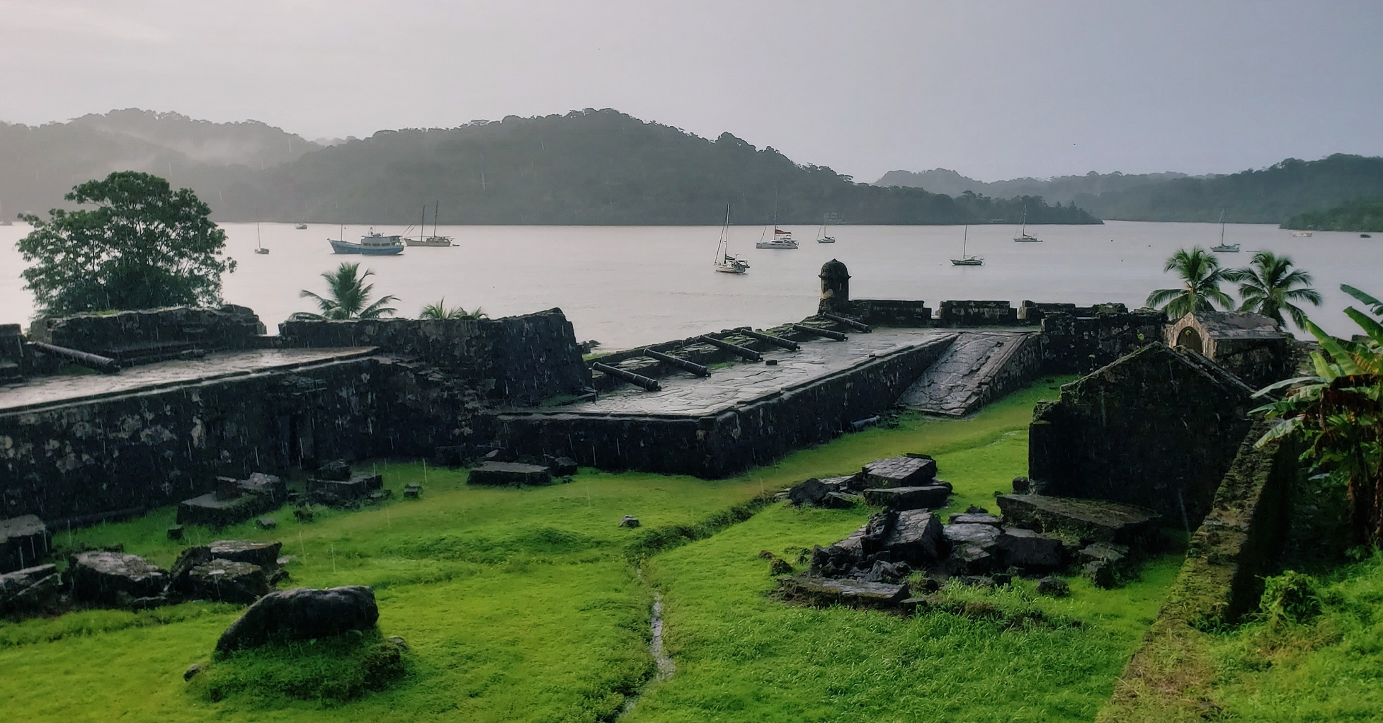We soon reached the coast and paralleled it for the remainder of the way to Portobelo. The rain finally kicked in during the final few miles to town, but it offered somewhat of a welcome respite to the heat. We arrived to Portobelo and searched around for lodging before settling on a hotel along the water, complete with a covered patio, A/C, and excellent wifi.