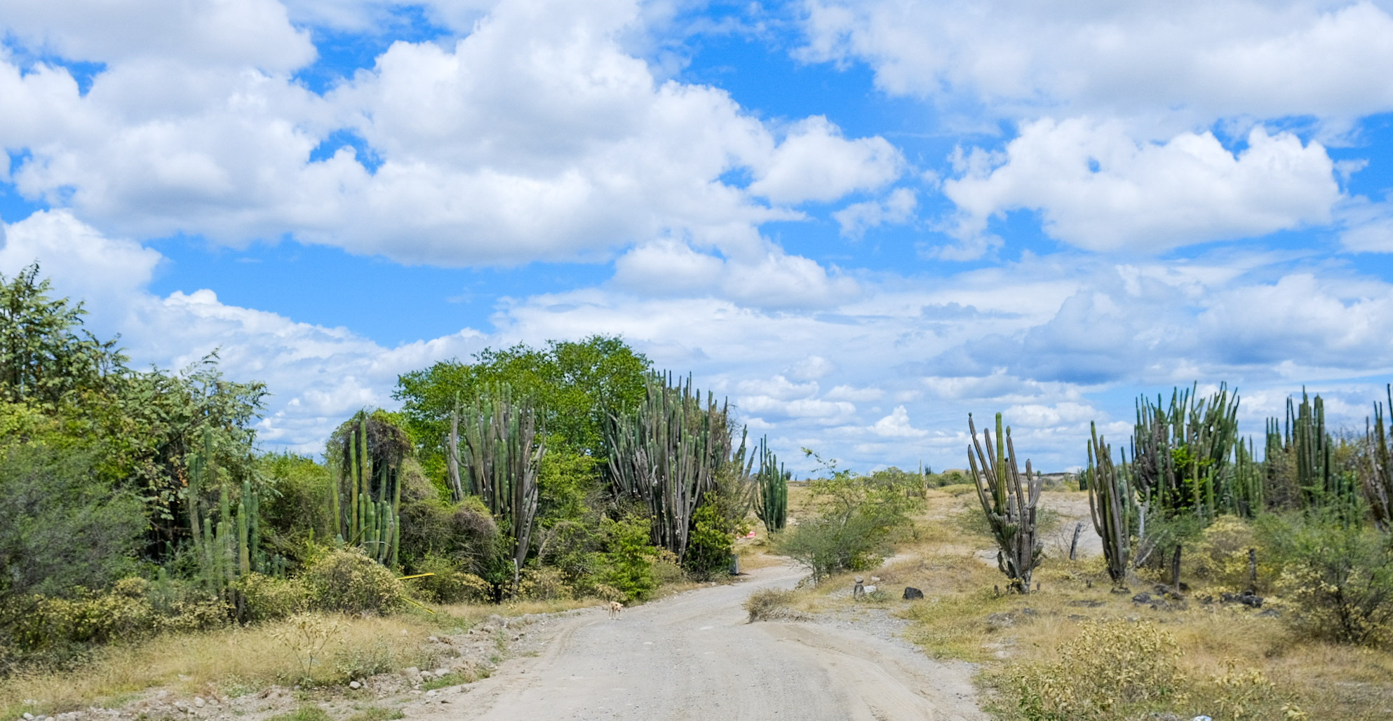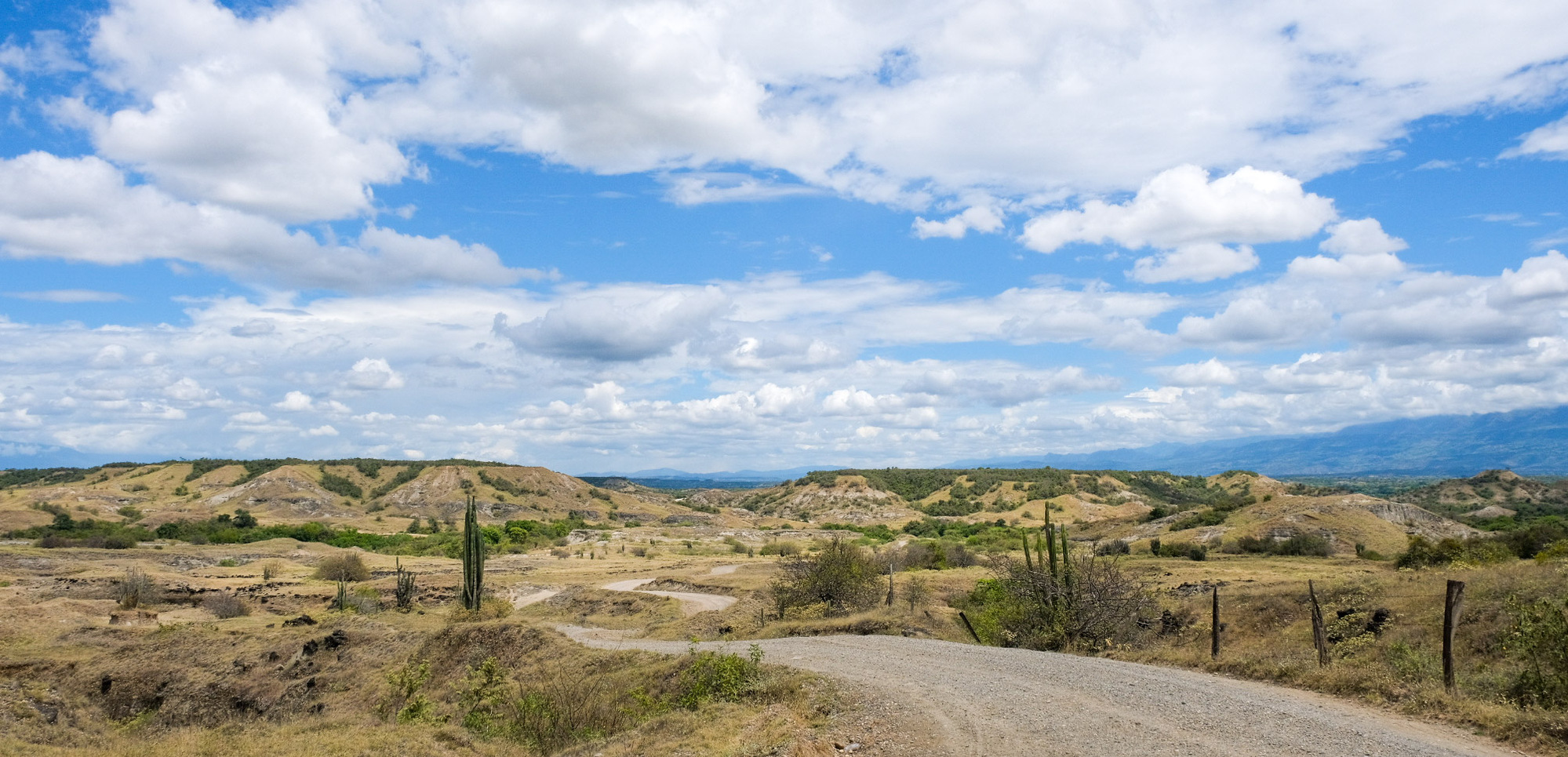 The terrain became drier as we meandered alongside the Río Magdalena, with large cacti beginning to line the roadside and horizon. We were lucky that we had decent cloud coverage, but it was still quite hot. Guess that's what you get for biking through an arid spot in July in the northern hemisphere.