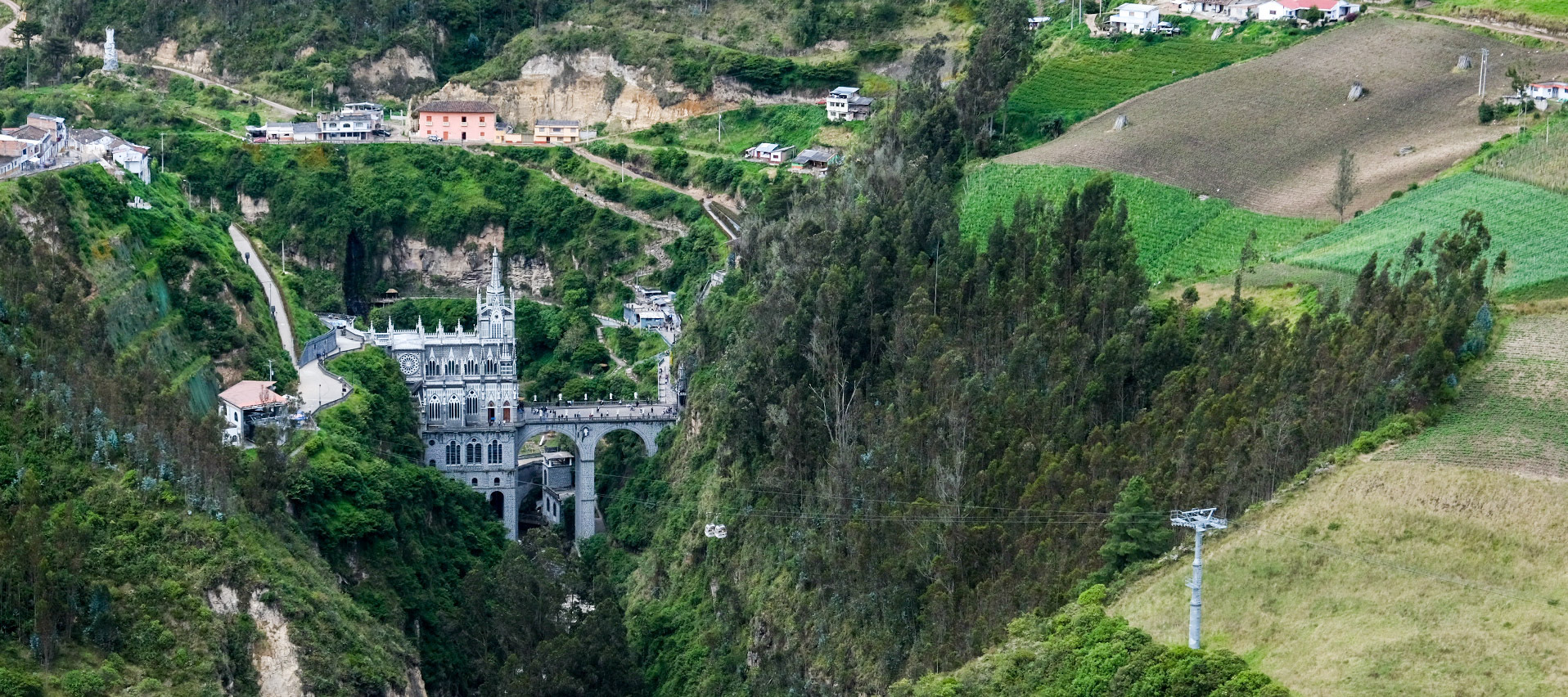 We rode into Ipiales for a late lunch. While there, Girish headed to Santuario de Las Lajas, a renowned church several kilometers out of town. He would be staying in Ipiales for another day to wait for a package as well as to see some local sites, so I wanted to meet up and say goodbye. Brian and I finished our meals and biked to a mirador overlooking the santuario, where Girish met us.
