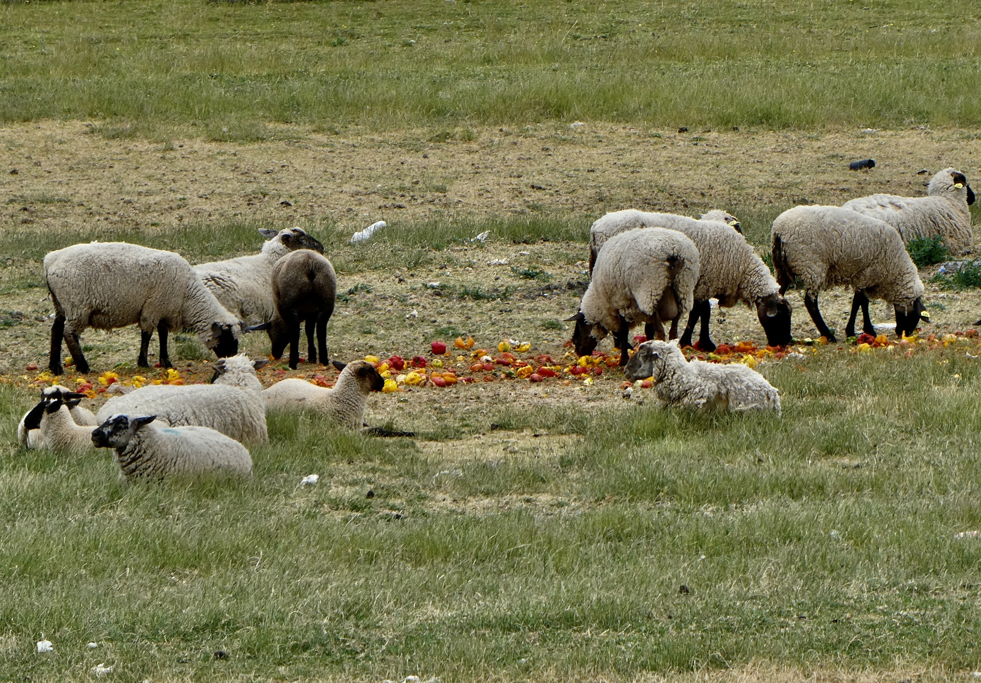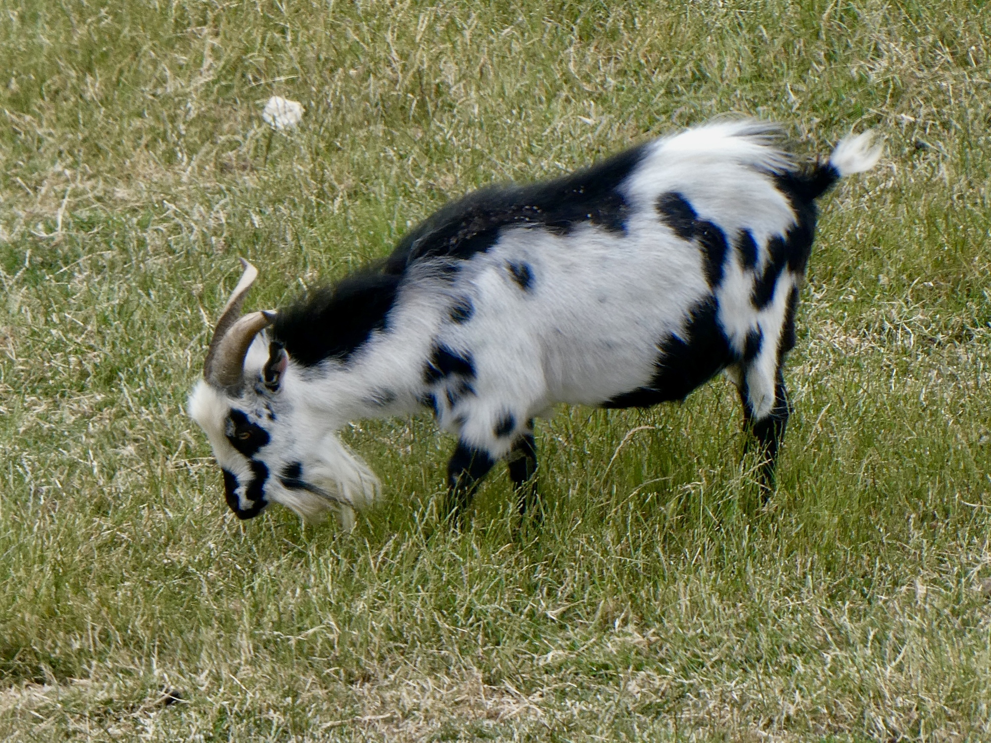 I’m feeling good and keeping a better pace than I usually do, and I’m well past the county line before she shows. When we meet she tells me about the goats just down the road, and when I say I’d like a look for myself she turns round to join me. A half mile later we get to them, and I see that by ‘goats’ she means a few goats and many sheep and lambs. Whatever. They’re both great, well worth a little extra distance.