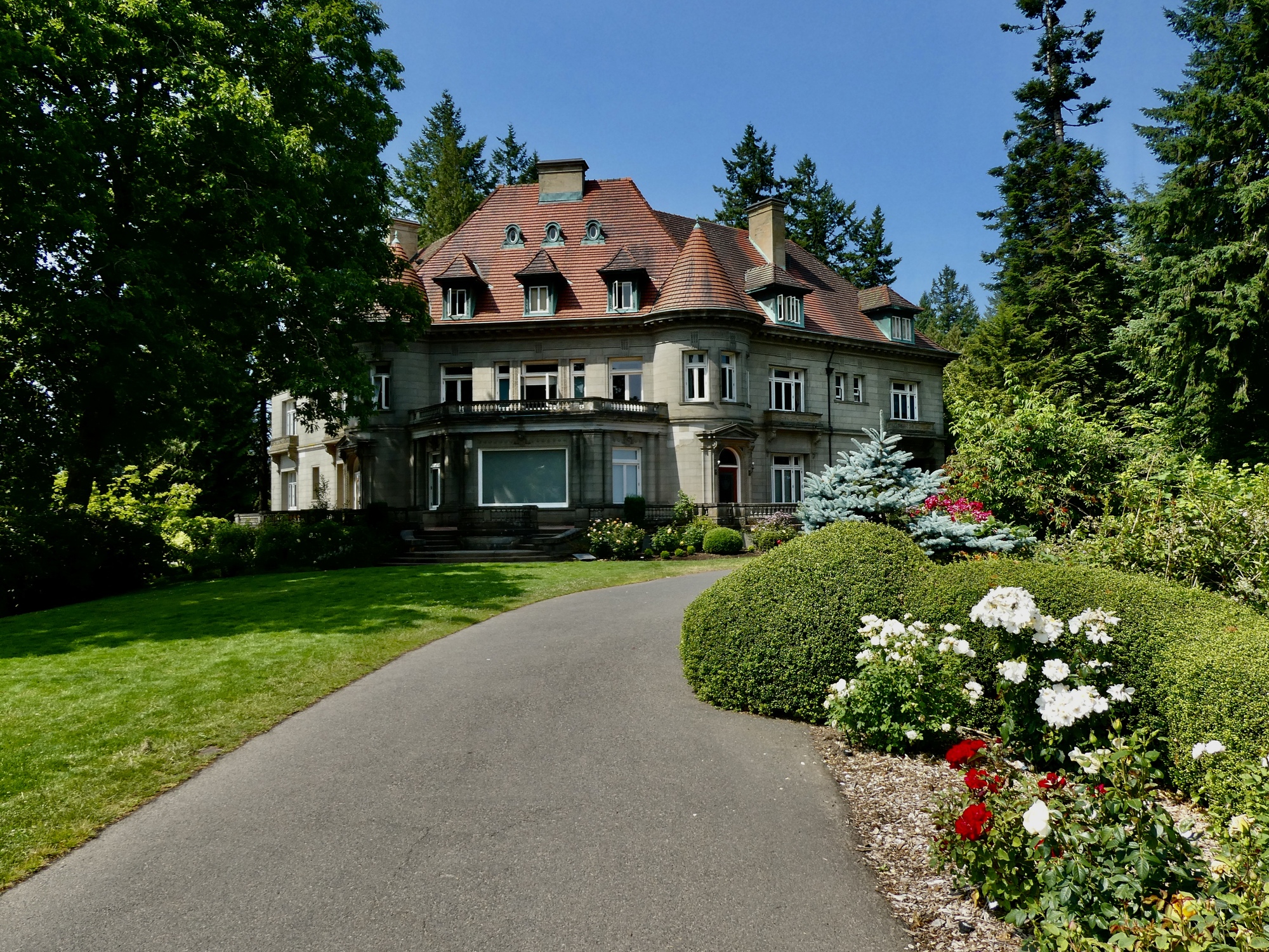 On a day like this, it’s no surprise that there’s a crowd assembled at Pittock Mansion, where the walk reaches its apex. They’re lined up taking in the expansive views to the east or admiring the mansion itself or taking their time walking along the manicured gardens. It really is a special spot and even on a quiet weekday there’s someone up here, so it’s to be expected.