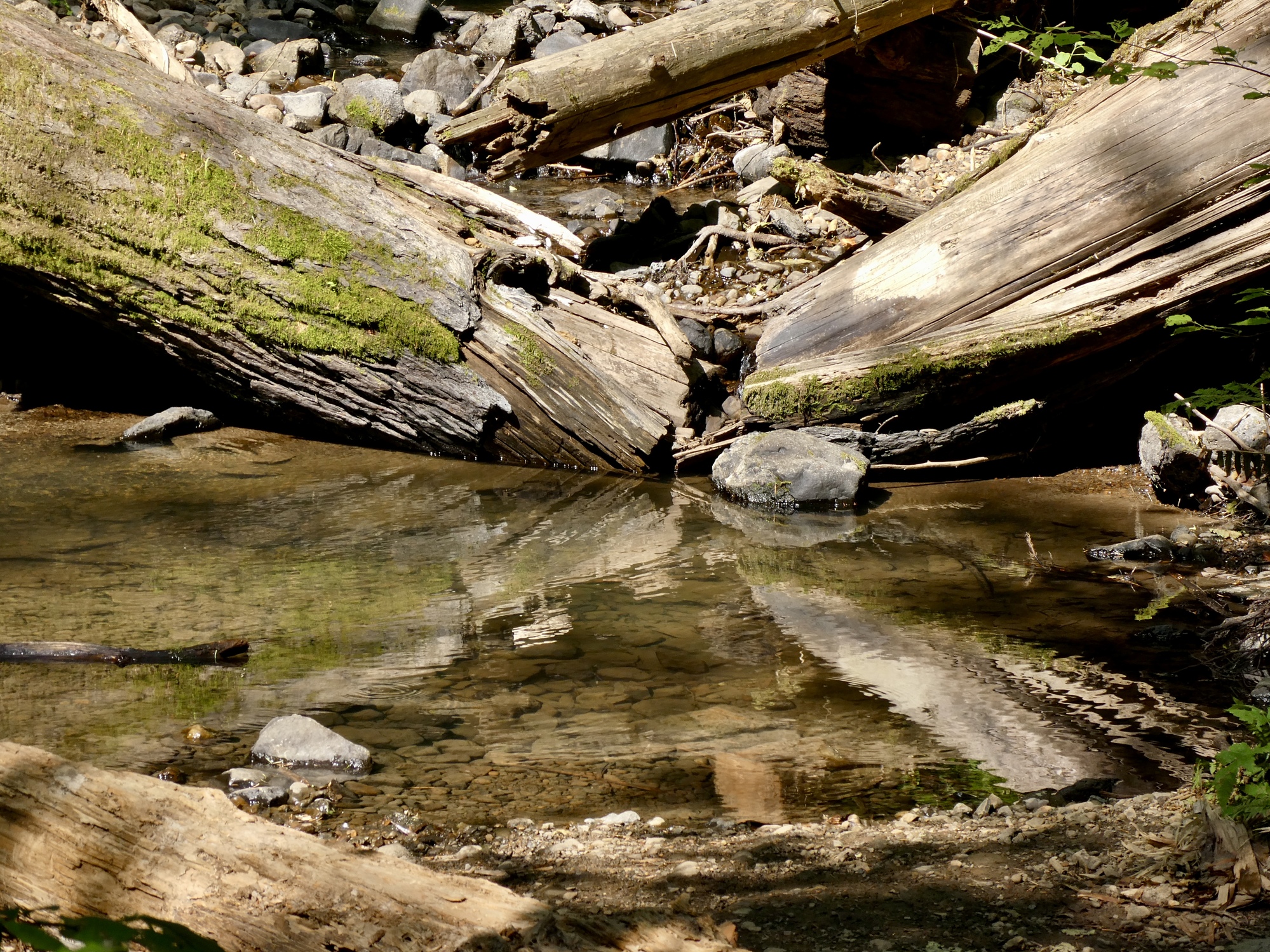 The shady, damp Balch Creek trail is always a delightful place for a walk and it’s the perfect place to be on a too hot full sun day. I’m not the only one with the brainstorm to think of this though, and the trail doesn’t have its usual secluded feel as trail runners regularly trot past, making a racket and scaring off any birds that might be around. Still, a great place to walk.