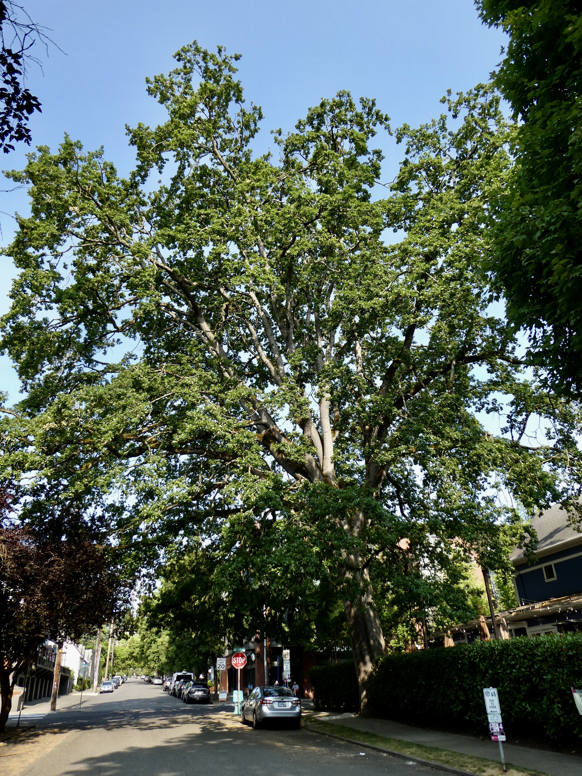I know this oak and it's the most majestic tree I know of in NW Portland. Notice the screws holding the plaque. Eventually all the Heritage Tree plaques will be replaced with ones with springs like this one. They allow the tree to grow without restriction and the plaque can move correspondingly without digging into the bark. A great improvement!