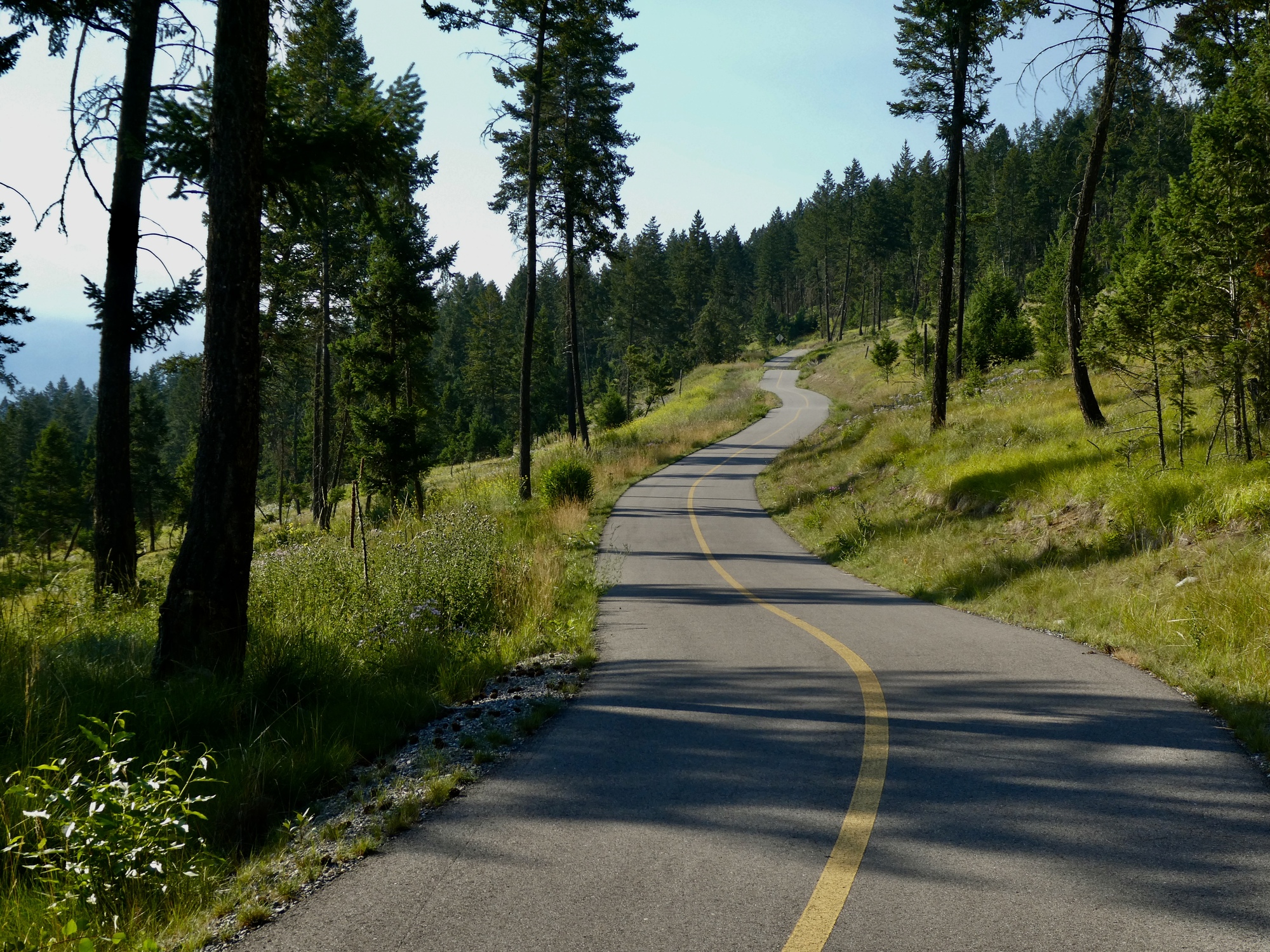 We once again get an early start, timing our departure so that we’ll arrive back in Invermere for lunch roughly at noon. After a ten mile ride south we find a convenient parking lot and start biking somewhere around eight. Conditions aren’t quite as attractive today as the previous two, because there’s enough smoke in the valley that it reduces visibility.