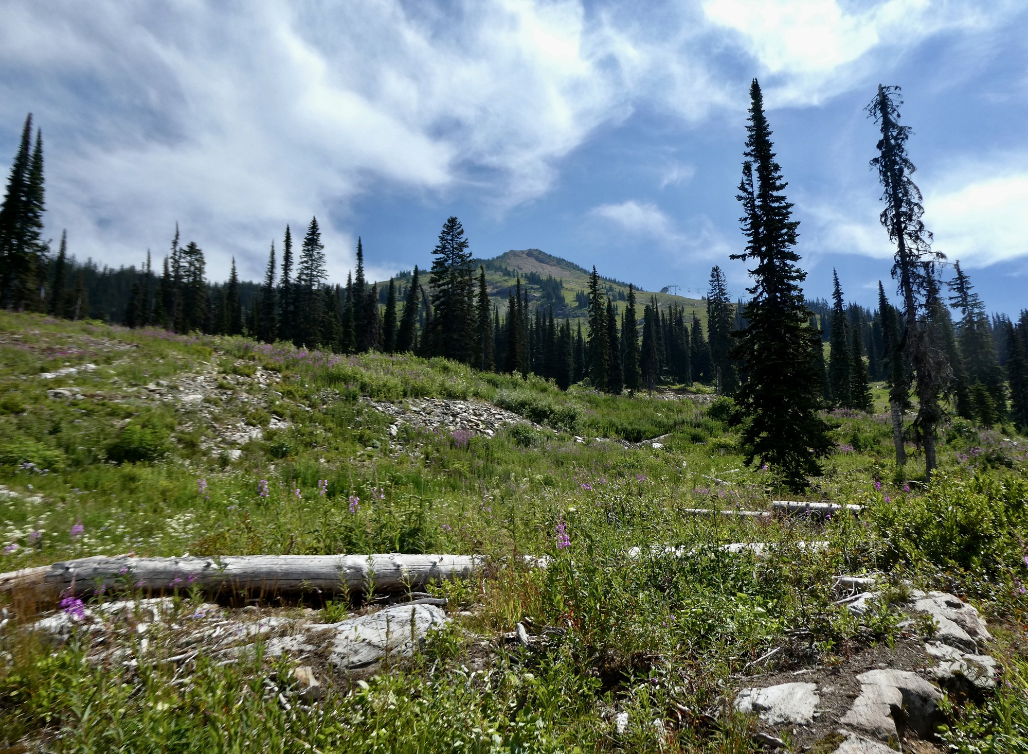 We’ve got three days on our hands here in Revelstoke, but we’re starting with a hike because today has the best weather for it. Some sort of change is blowing in tonight, bringing the threat (or promise, because no doubt it will be welcome here) of rain and a significant drop in temperature. Today is the best day for being high up on a mountain and enjoying the views.