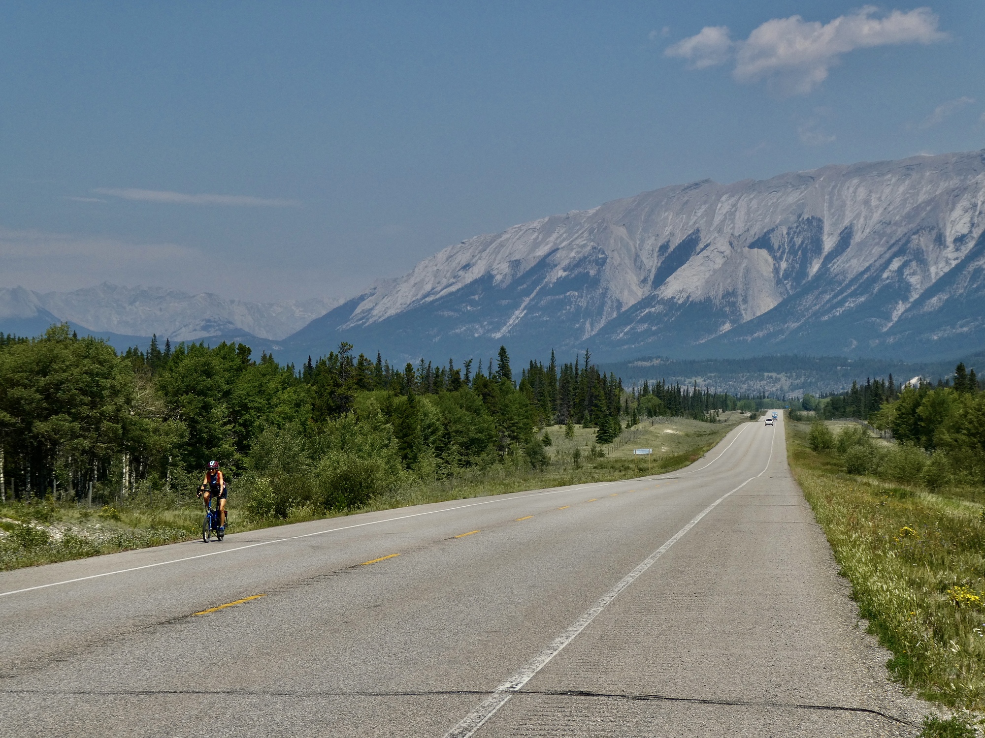 Later Lyle and I were discussing this ride and he raised the idea of a possible five or six day loop that would begin and end in Canmore: north to Rocky Mountain House on Route 22; west to the Crossing on the 11; south to Lake Louise on the Parkway; and back to Canmore on 1A and the Heritage Trail. With the right conditions and maybe younger bodies, it would be amazing.