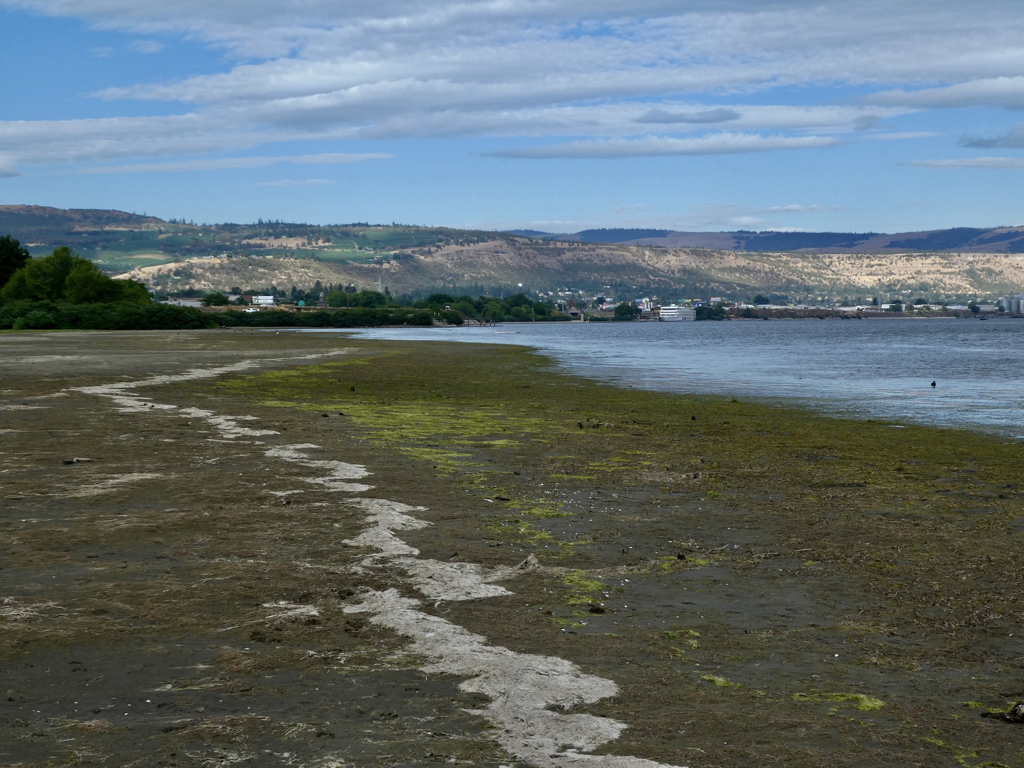 We check in to our room at The Dalles Inn around four, and spend the next several hours in the room avoiding the oppressive heat. Toward sundown though I head down to the waterfront, thinking I might see some birds on the river along the Riverfront Trail. I don’t really, other than a few gulls too far off to distinguish; but as compensation I find the Bargeway Pub, and a pleasant spot to sit on the deck and enjoy the views over an IPA.