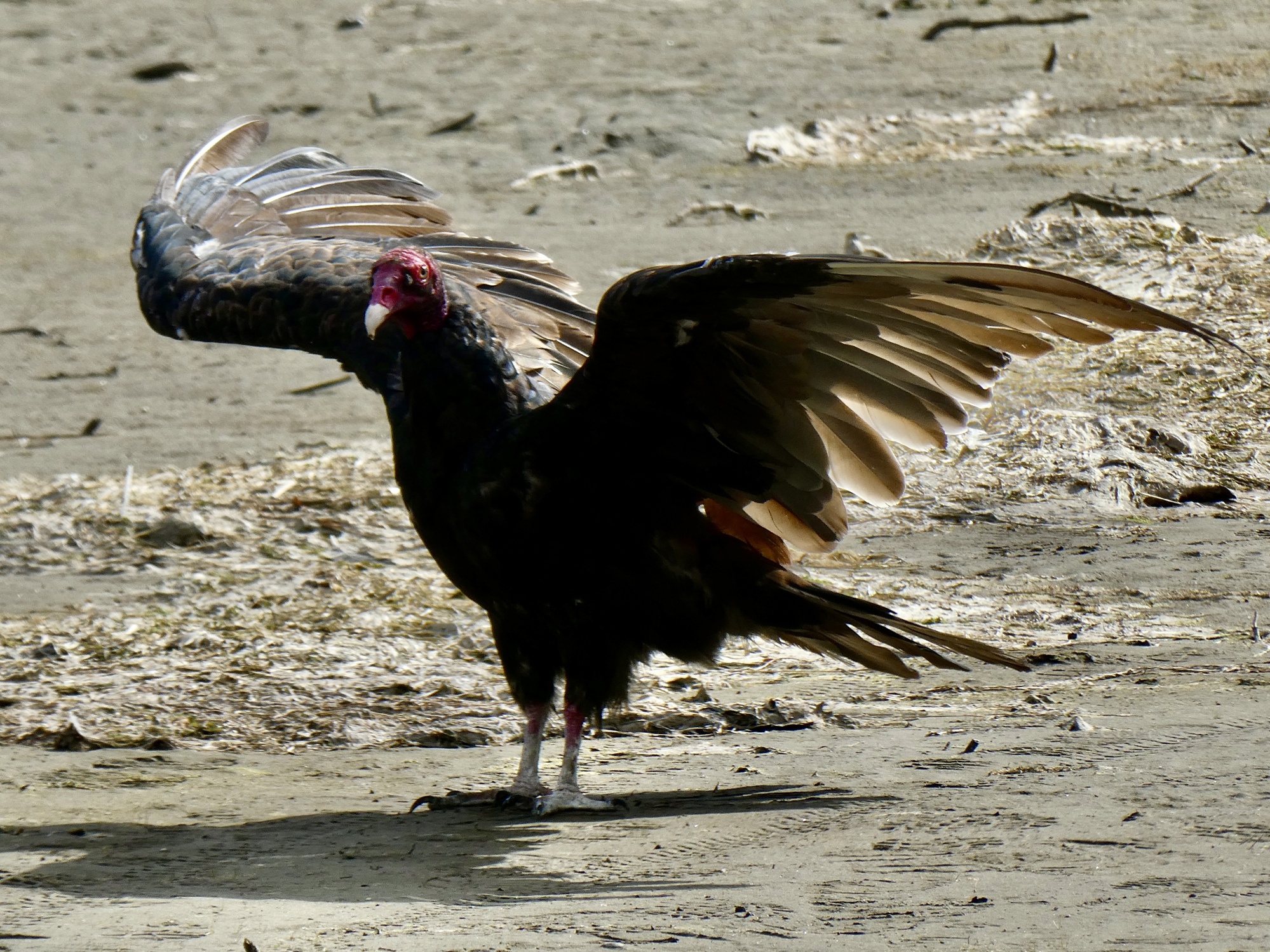 Rachael’s knee is no better today, so a ride or walk on the way home is out. We can’t check into our Airbnb for the next month until noon and we have to be out of our hotel by 11, so we pick 10:30 as a departure time and I go out for a walk along the Riverfront Trail. My knees feel better after the walk than when I started, reminding me that I really do need to start working walks into the routine more frequently. And it’s a very enjoyable walk that surprisingly reels in a new bird for the list, although best was the flock of vultures on the beach that let me approach surprisingly close to them.