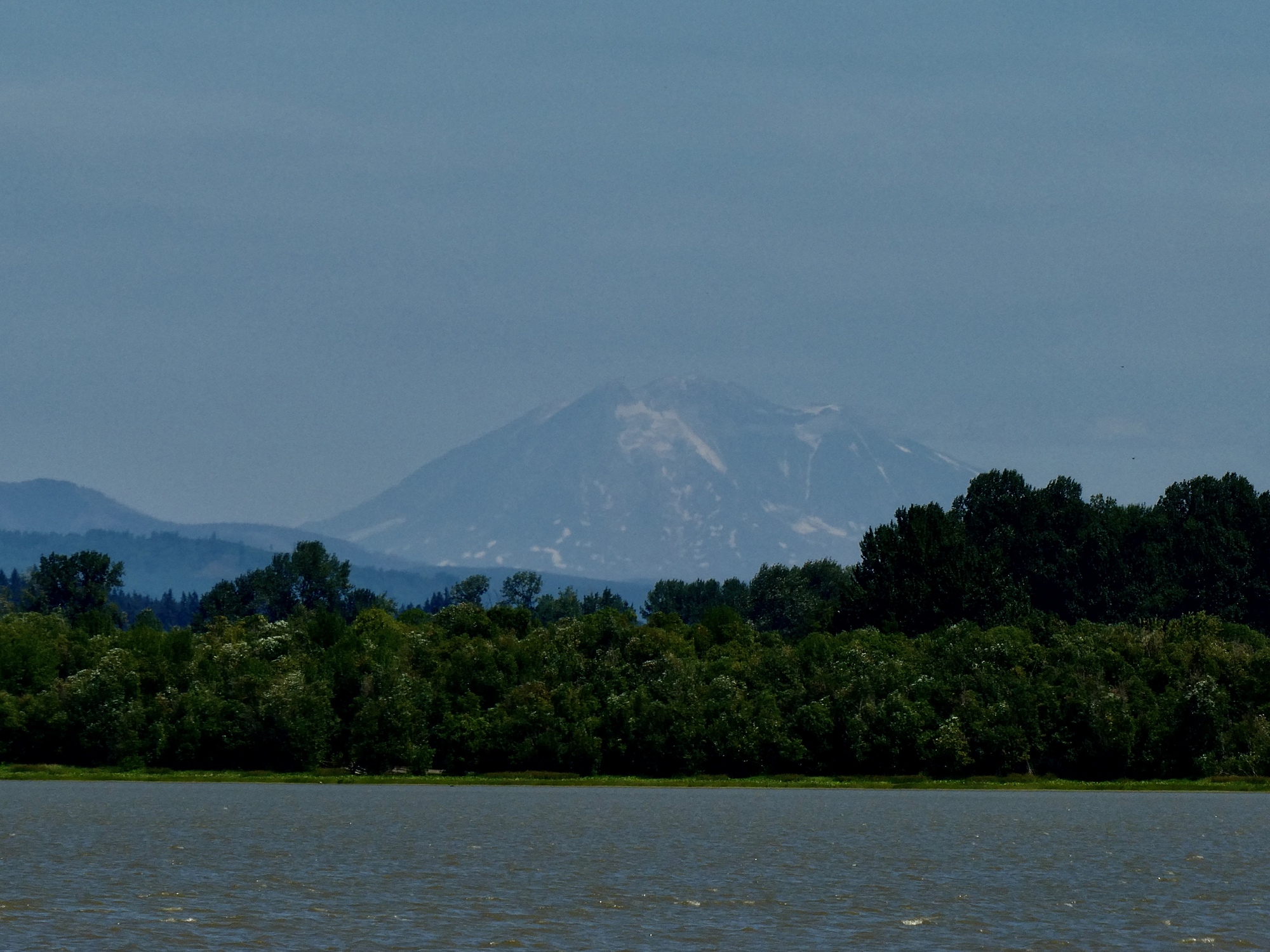 It looks nothing like what I remember. There’s plenty of water now, and it looks like it would be a fine place to canoe. What surprised me more though was the view from the shore, from which all four of the nearest snow-capped volcanoes are visible. Both Saint Helens and Adams were shocking, and almost completely bare of snow.