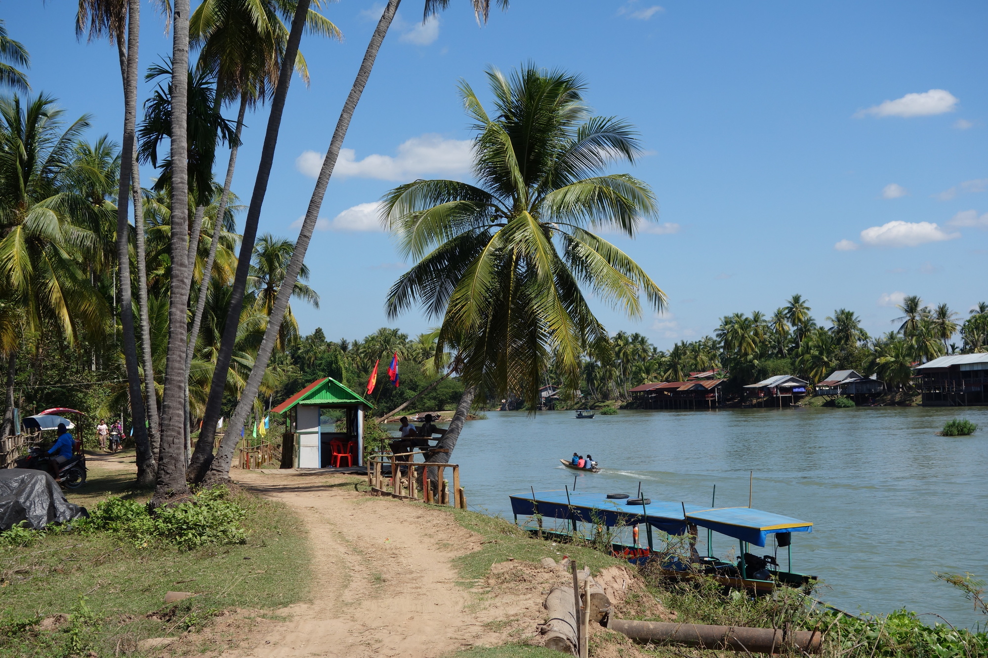 My only task for today was to organize my transport back to the mainland. One of the options was to go down to Ban Hang Khon on the very southern tip of Don Khon and get a boat over to Veun Kham, the border crossing into Cambodia. I did enjoy the ride down there today but only because I had no luggage with me. Terrible condition of both tracks and I was already less enthusiastic about this option when I got the the shed selling the boat trips. I asked about the price for a one way ride and they wouldn´t come down from 150000 kip which is a huge amount here in Laos. No need to book anything in advance so I decided to go back to Don Det to look into my other options. There is one pub called King Khong run by an Englishman who had been suggested to me for any inquiries on Don Det. Nice guy and he offered me a ride over to Nakasong for 70000. Still too much I thought knowing a bit about the ferry prices by now. Coming back to my guesthouse I asked the owner Hom and he made a quick telephone call resulting in a 35000 kip offer, pickup at the guesthouse included. That´s more like it!