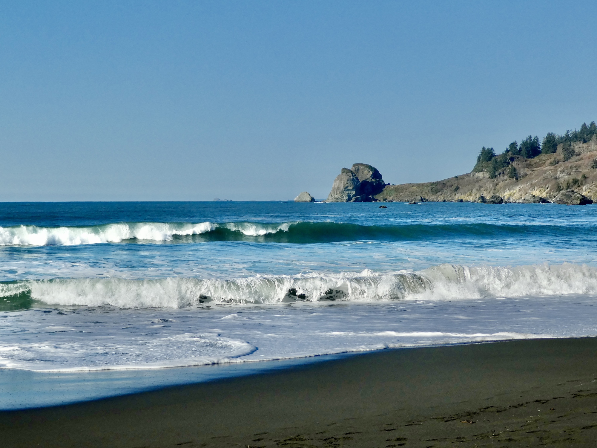 Because every day should have at least one photo, I pull off for a view down the coastline at an overlook north of Klamath. It’s gorgeous. It feels like we’re in the south already.