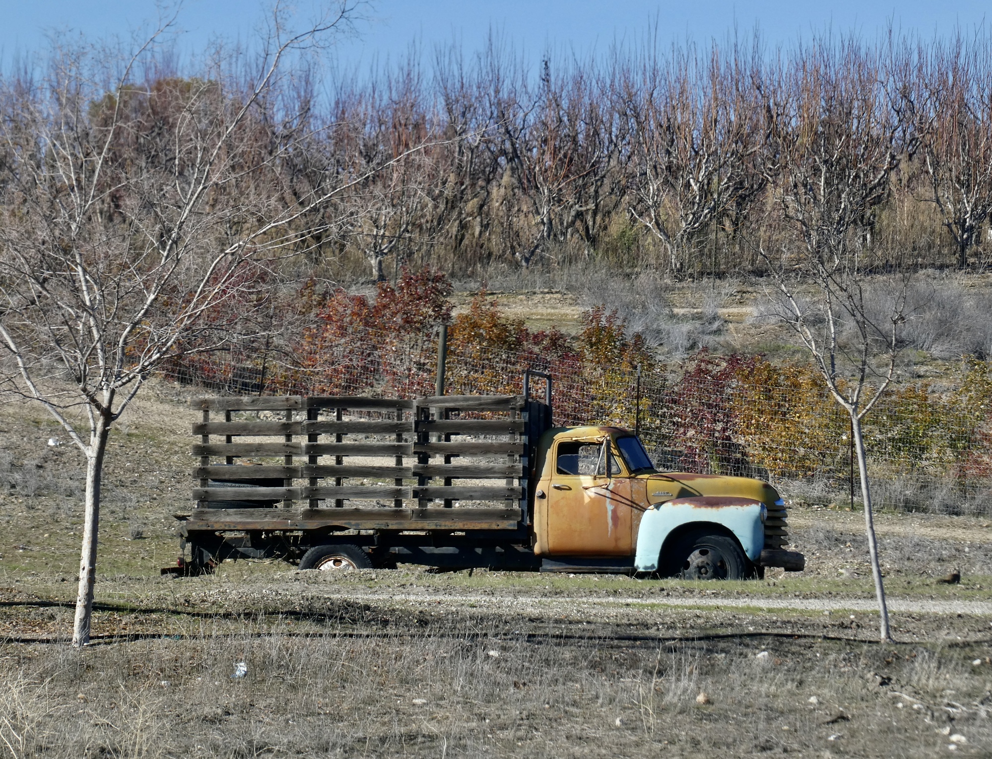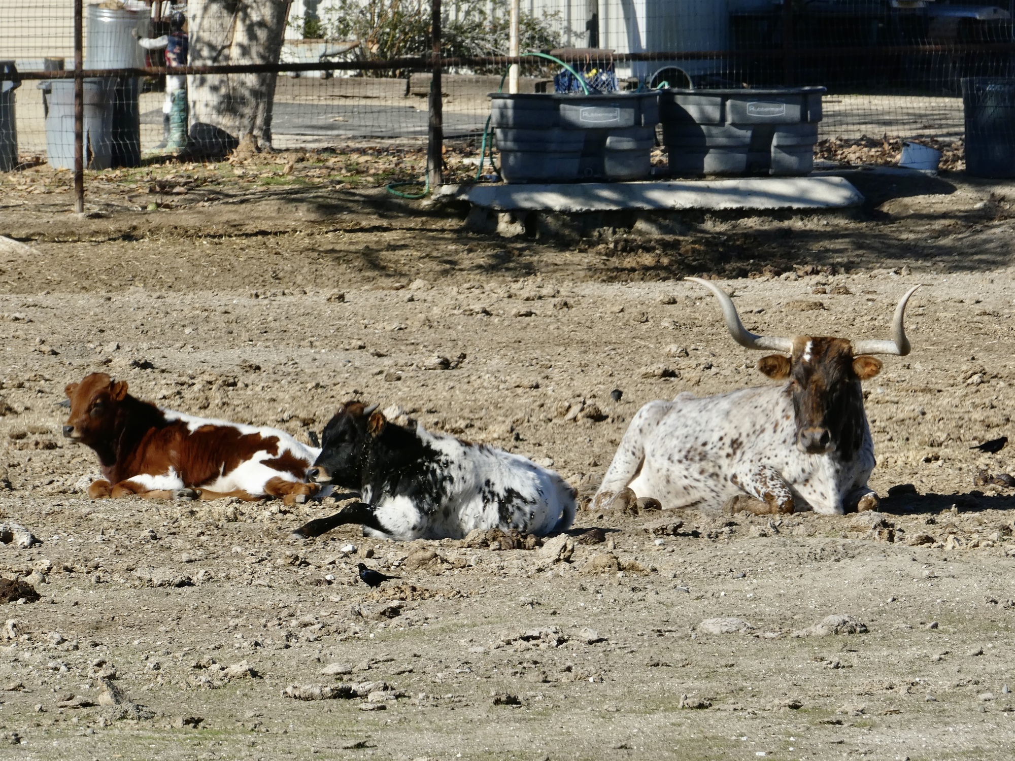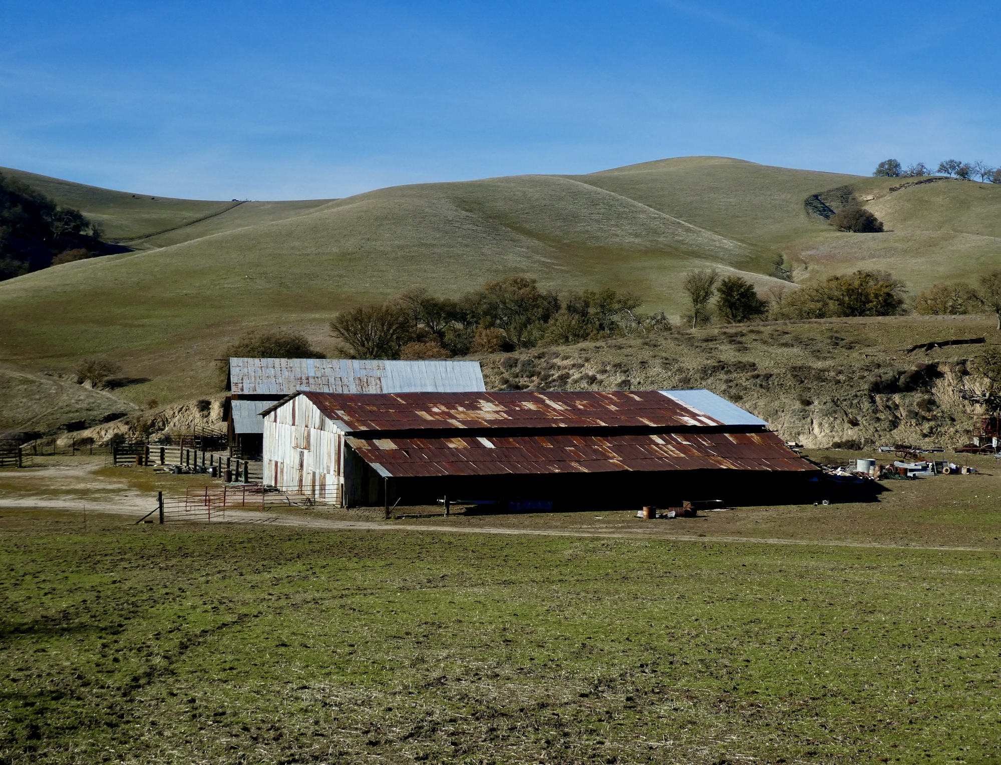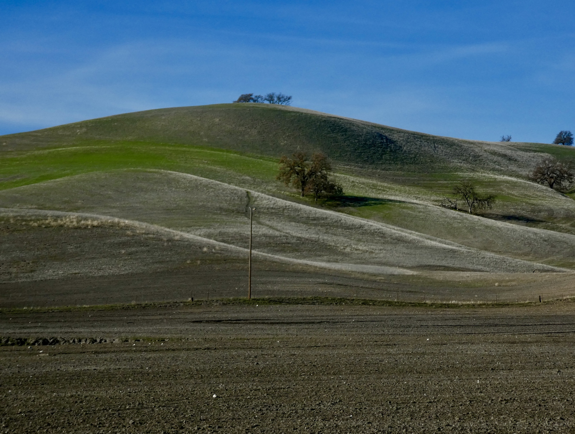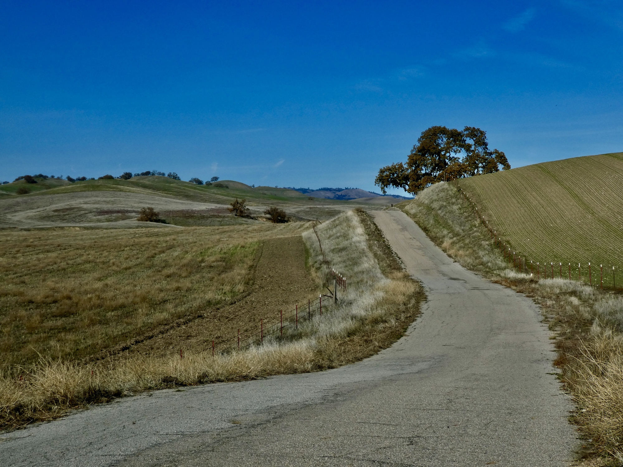 We rode up Hog Canyon last December on our drive south, and were stunned by its ethereal beauty. The conditions were perfect that day for seeing it at its best, with a partially overcast sky setting off the shimmering hills and fields to their best effect. It was an excellent ride today also, but with a cloudless sky the colors were all just a bit washed out. Even with that though it was definitely the best of the rides from our stay here. Also, it was easily the best birding day of the set. In addition to the two shown here there were meadowlarks, hawks, ravens, quail, western bluebirds, a brilliant blue mountain bluebird, and a mockingbird being harassed off the scene by a pursuing blackbird.