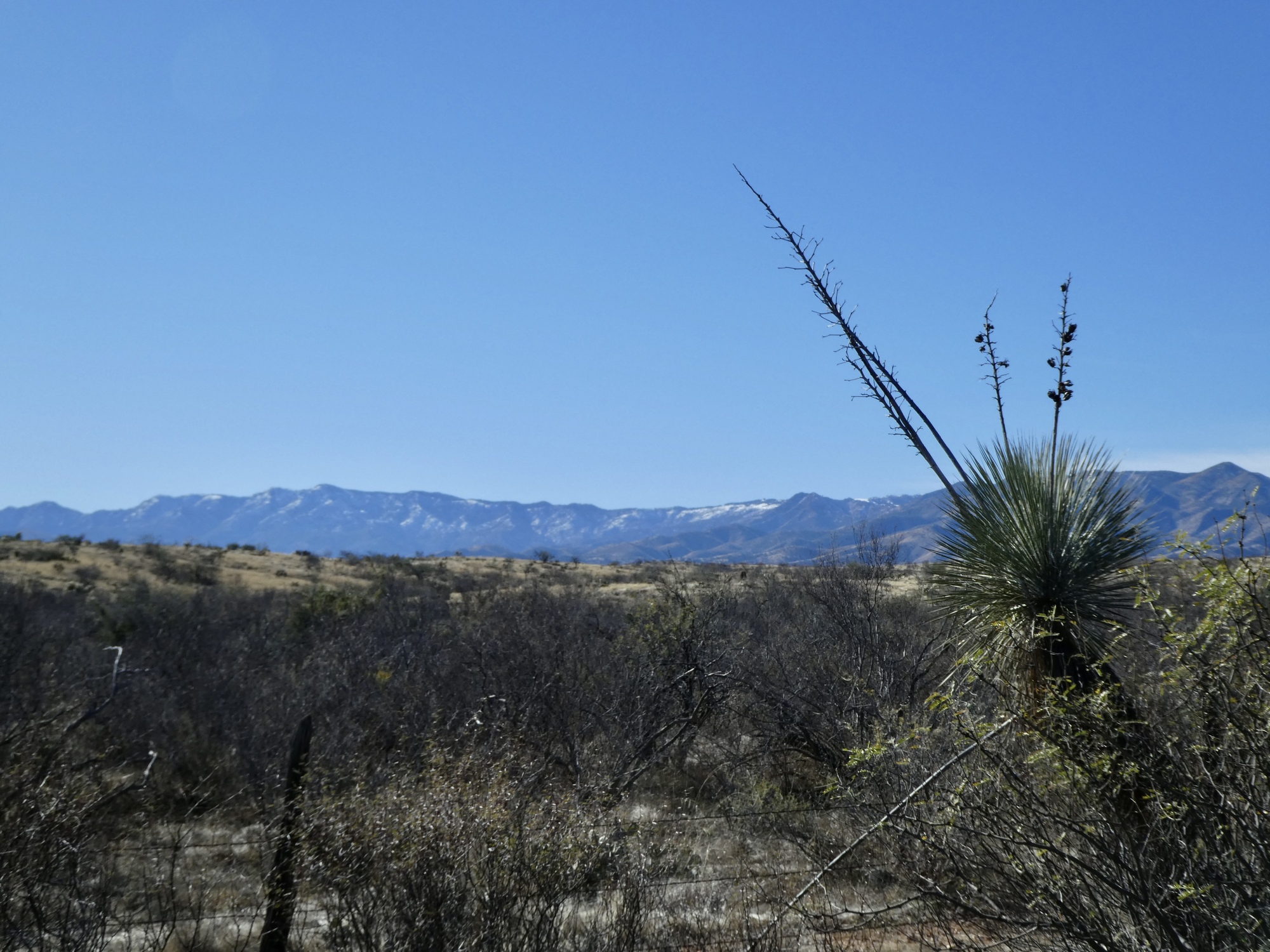 Over the top and it’s all downhill for the next fifteen miles - fifteen exhilarating, gorgeous miles that eventually drop to a level just above the San Pedro River. Once we drop below the oak forest the views open up, with a gasp inducing panorama straight ahead across the San Pedro Valley to the long line of the Galiuro Mountains rising above the opposite side and to the right at Mount Lemmon and Mica Mountain.