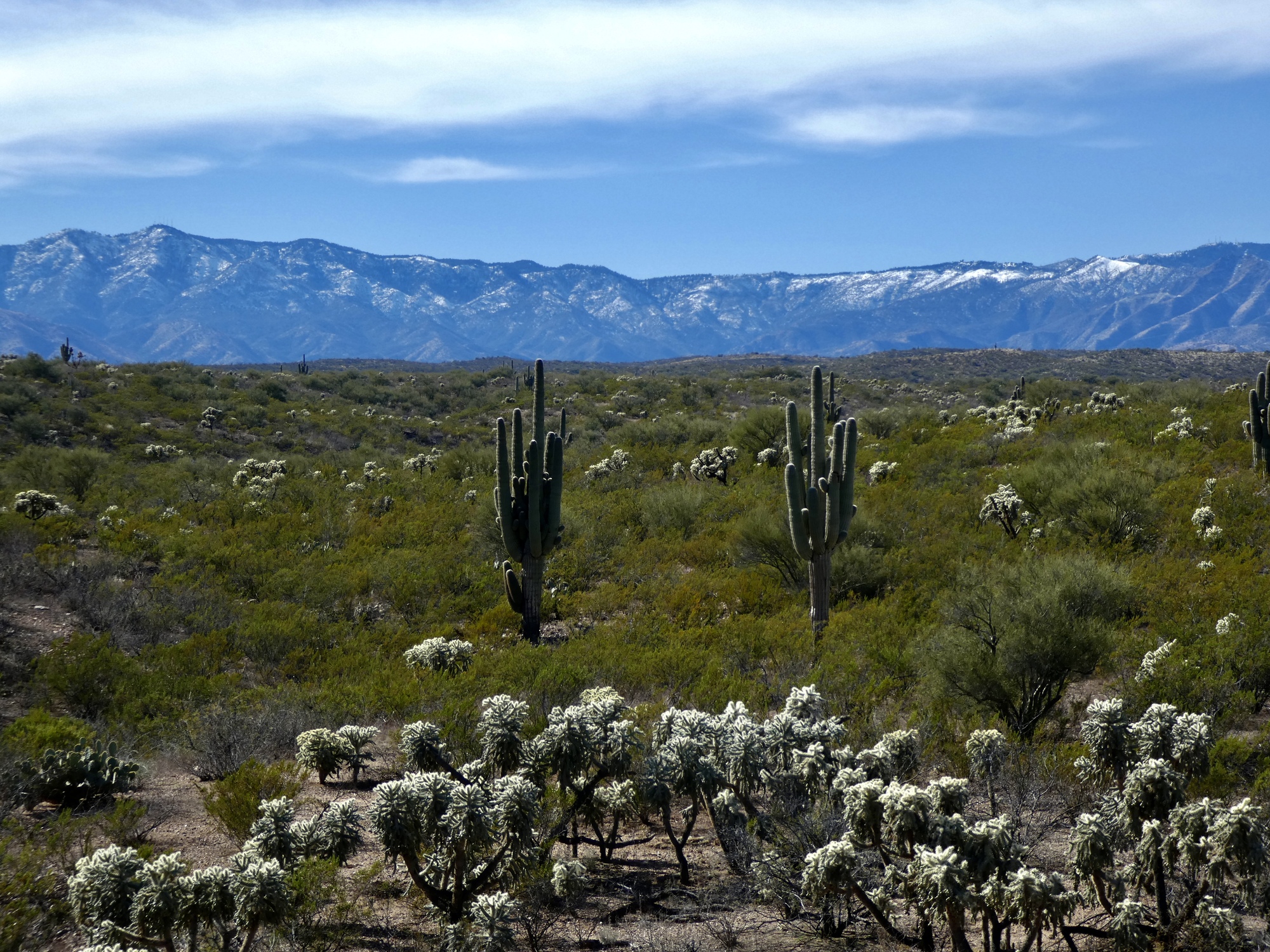 The ride to San Manuel begins with a climb - a fairly modest one that rises 400 feet in two miles, topping out at 4,800 feet. There are really only two climbs for the day - this one, and the fifteen mile long one that gains 2,200 feet on the way back. So in one way of looking at it, the work’s half done and we’re only two miles into the ride!