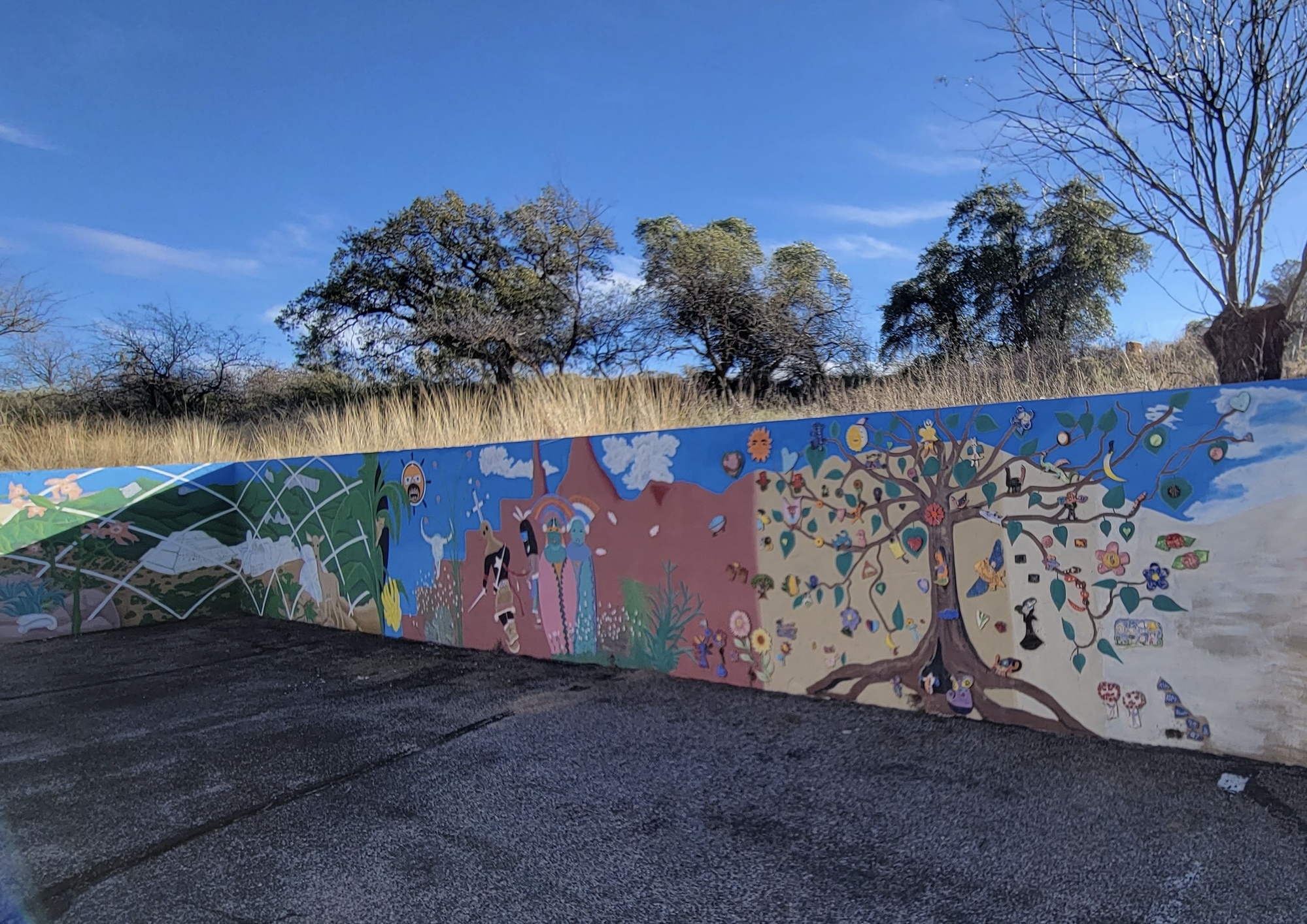 The wall surrounding the Oracle public library is completely muralized.