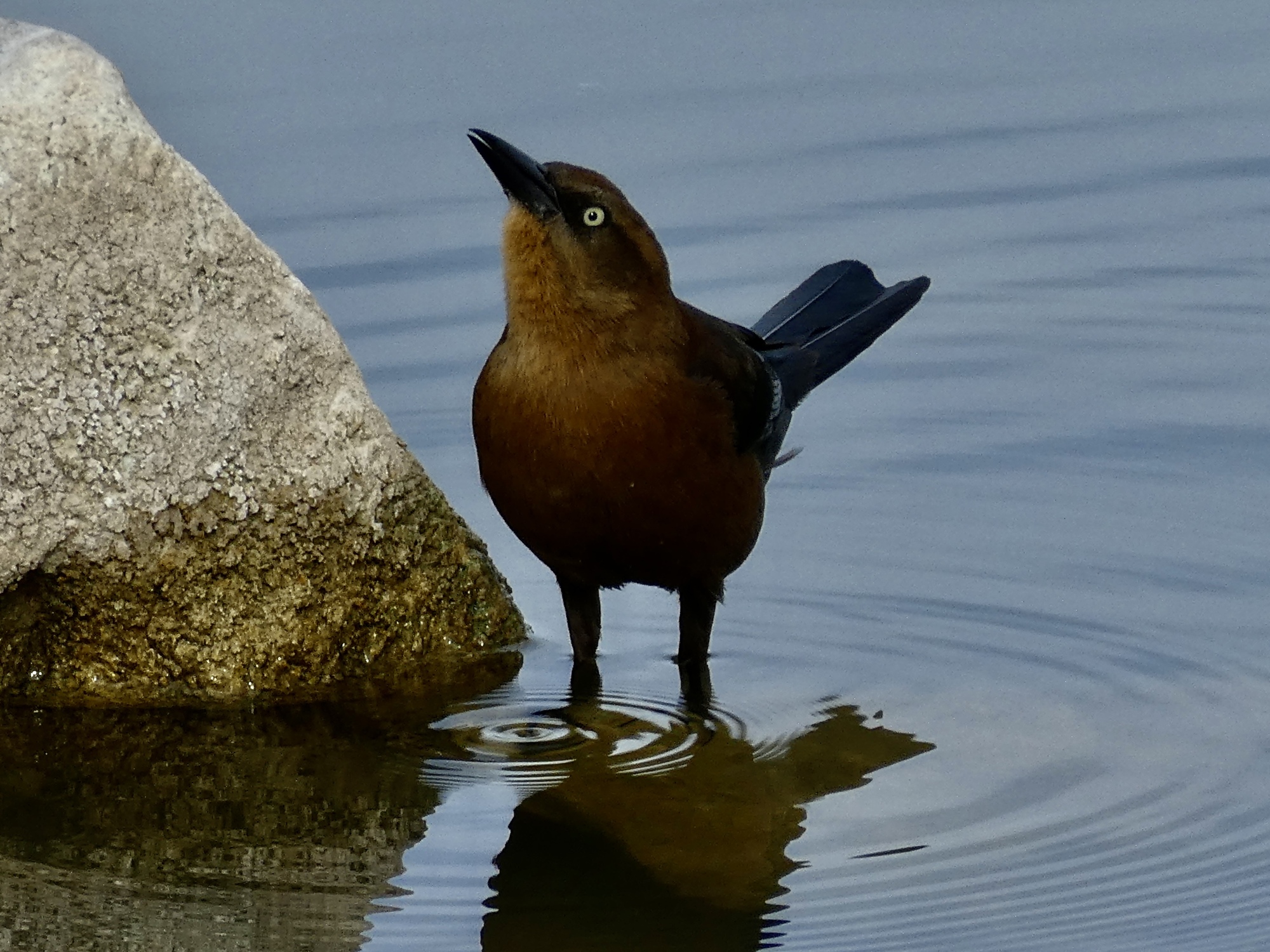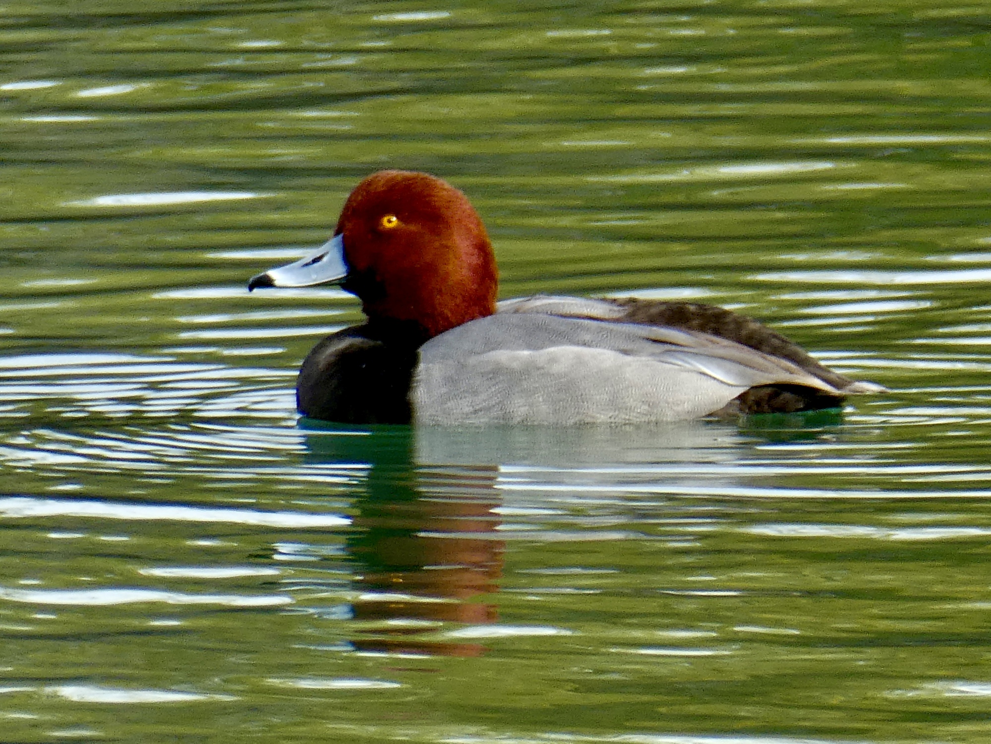 So I’m right, and the warbler sighting is a harbinger of good things to come. There are a few redheads on Kennedy Lake this morning, and two of them are drifting by close enough to get a good shot. And while I’m there I decide to snag better shots of birds we’ve already seen, the boat-tailed grackle and Anna’s hummingbird. A good day, and I’m only six miles into it.