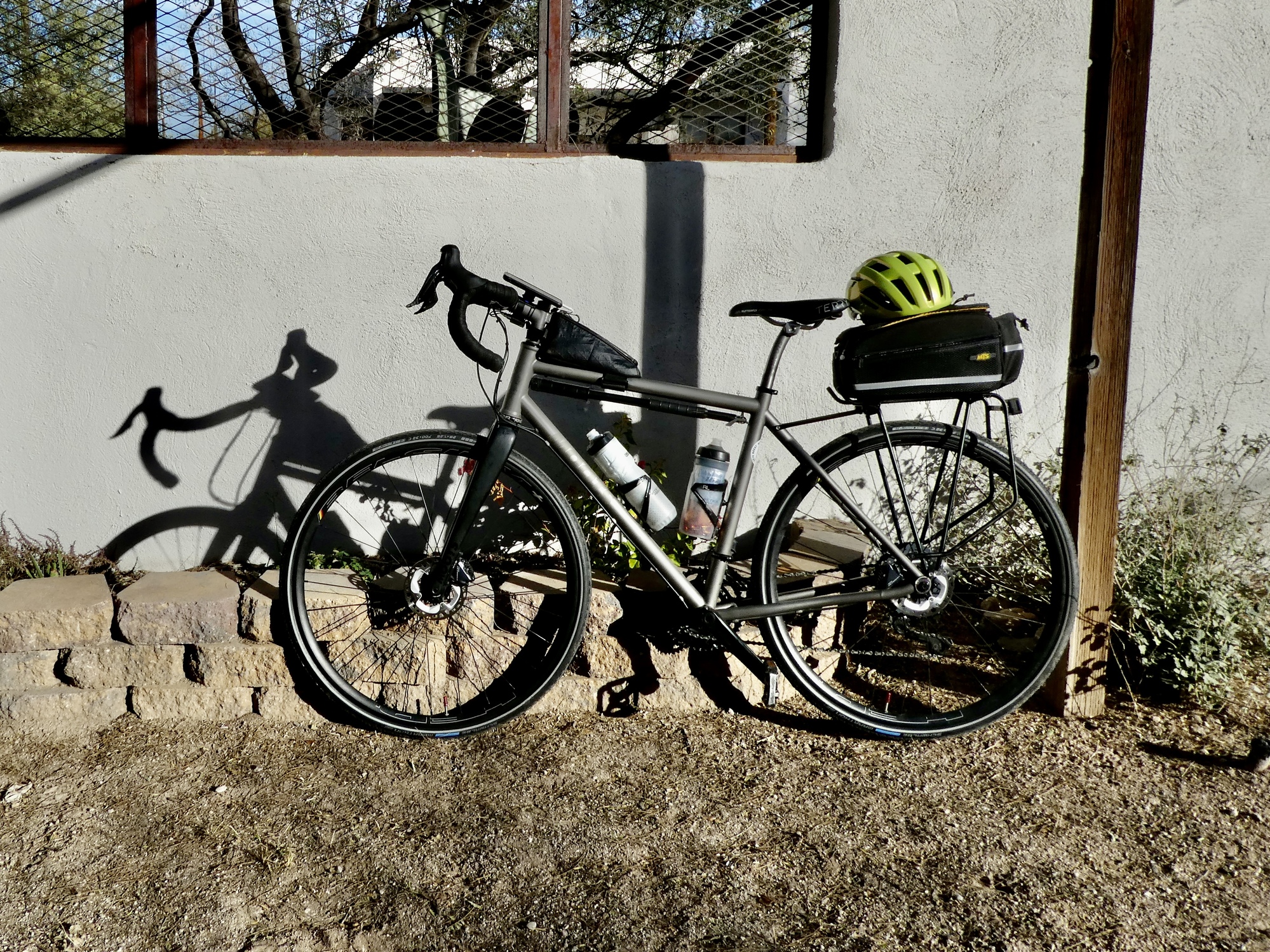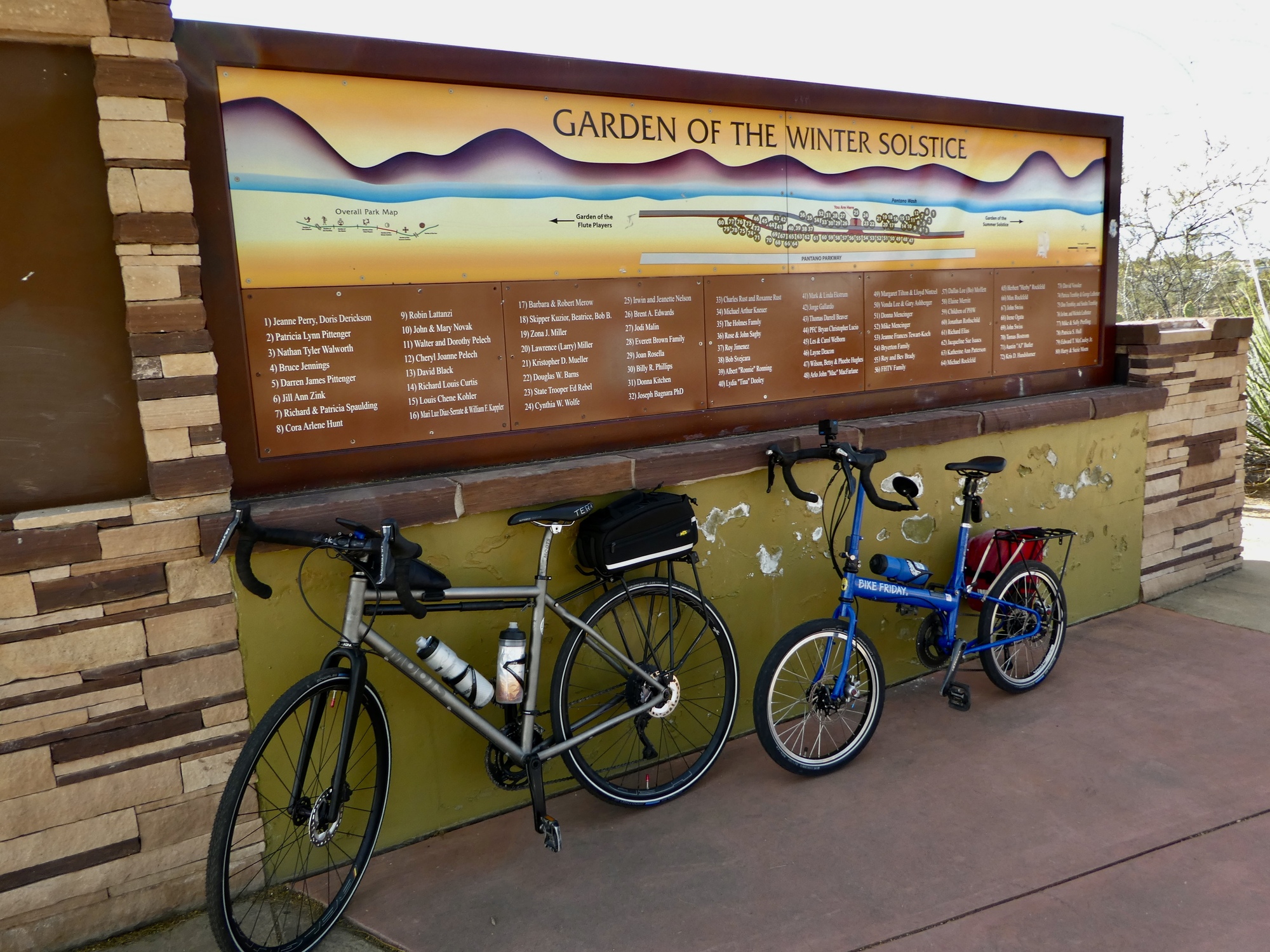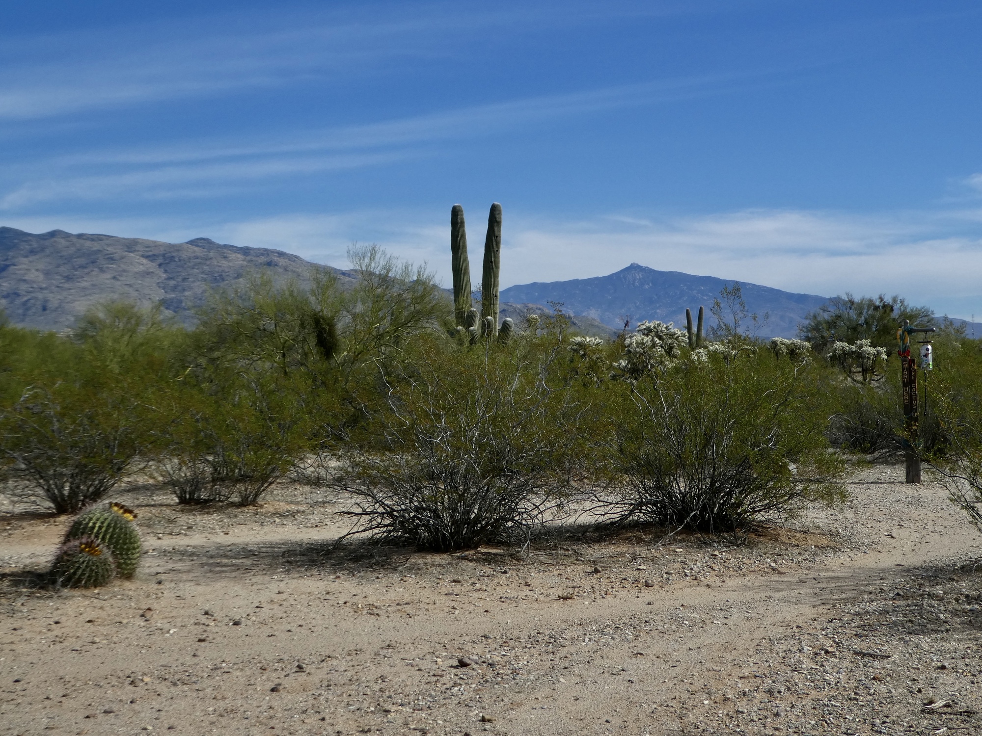 A half an hour later, both brake lines bled and back in a working state, we’re on the move again. It’s an easy decision to drop the plan for Saguaro for the day as too ambitious at this point, so we head north on Mountain for the Loop with a plan to bike east along Rillito and south along Harrison until it feels time to turn back.