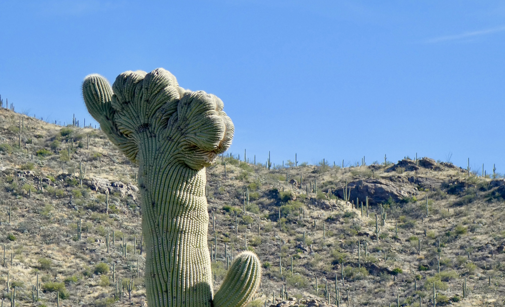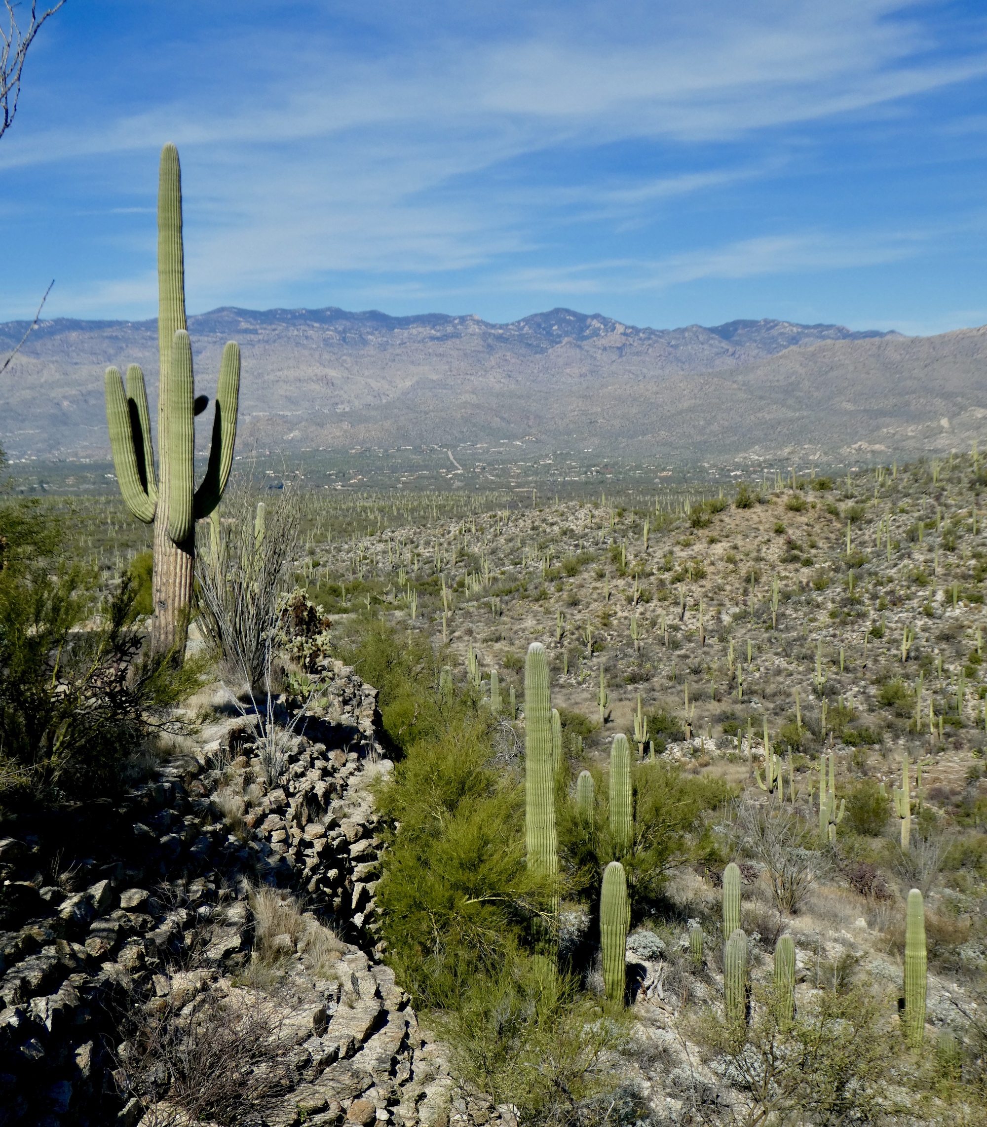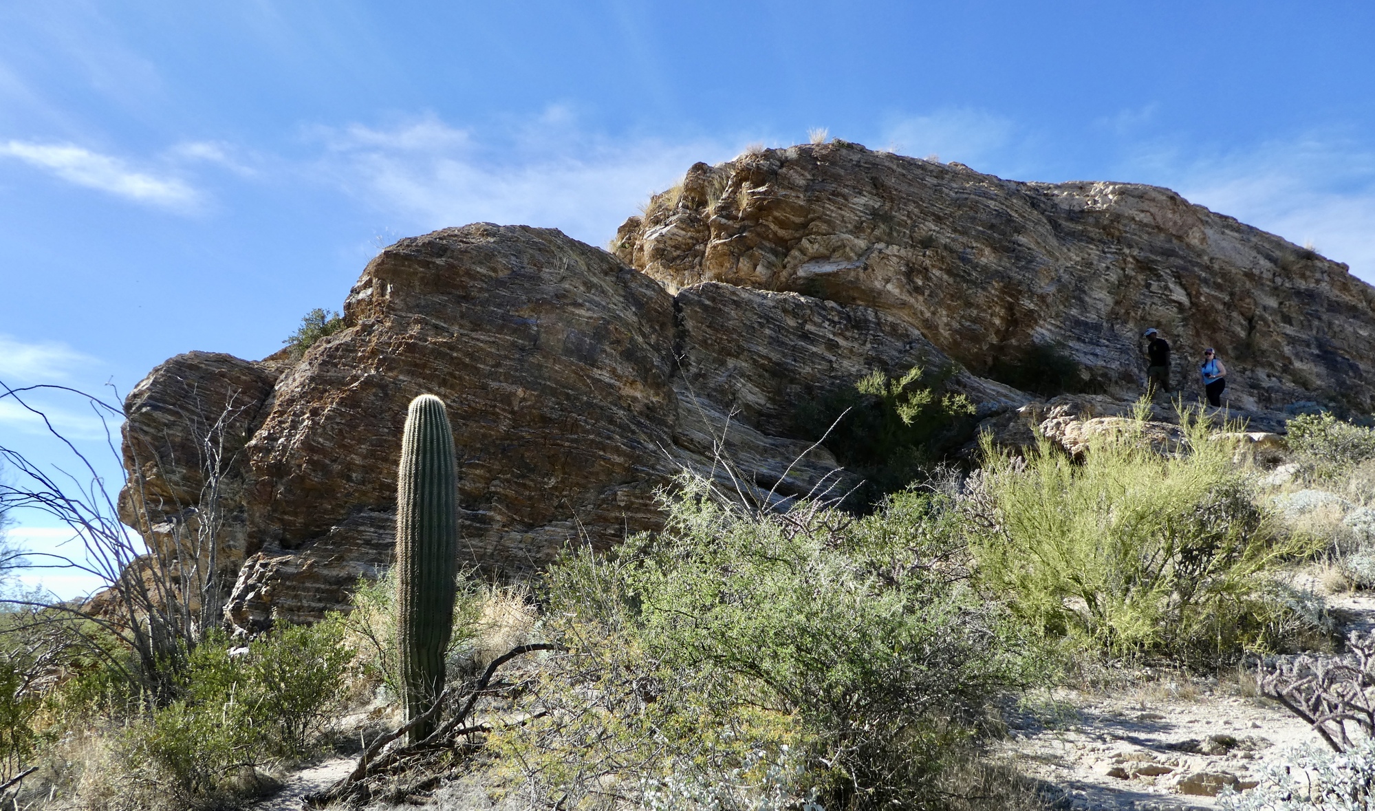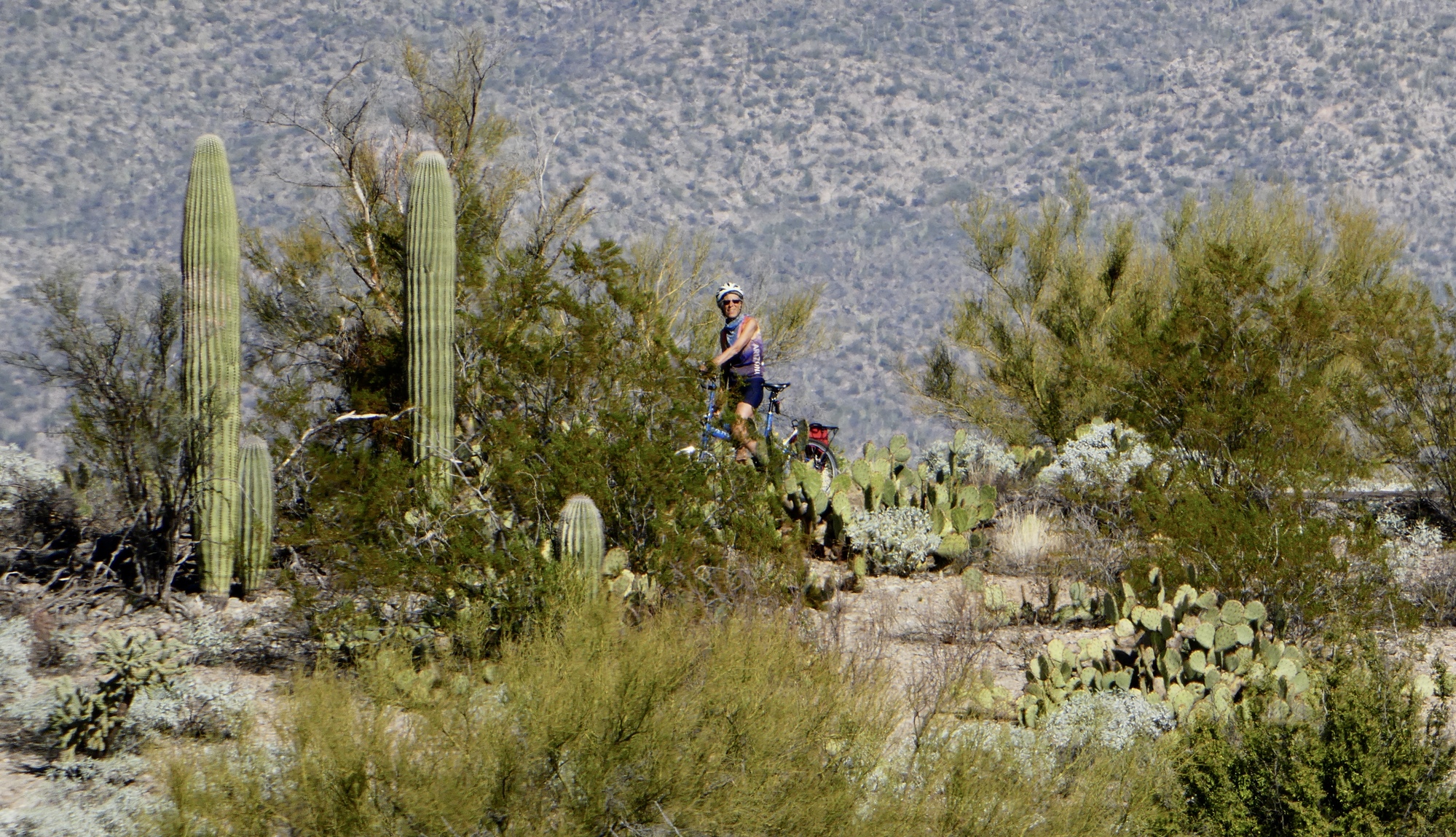 Rachael and Susan left the ailing Scott behind and were on their way to Saguaro National Park by 10 am. We started out through the beautiful University of Arizona campus, dodging students and reminiscing about Susan’s days in academia - we’re both suckers for the joys and amenities of college towns. After a few idyllic miles through neighborhoods along the Bike Boulevard, we met our first mentally challenging stretch of the day - 2.5 miles along the busy E. Speedway Blvd. However, the ample bike lane and courteous drivers eased my anxiety and we were soon back on another stretch of the Loop, where we had a nice conversation with Steve, out enjoying this splendid sunny, blue sky day.