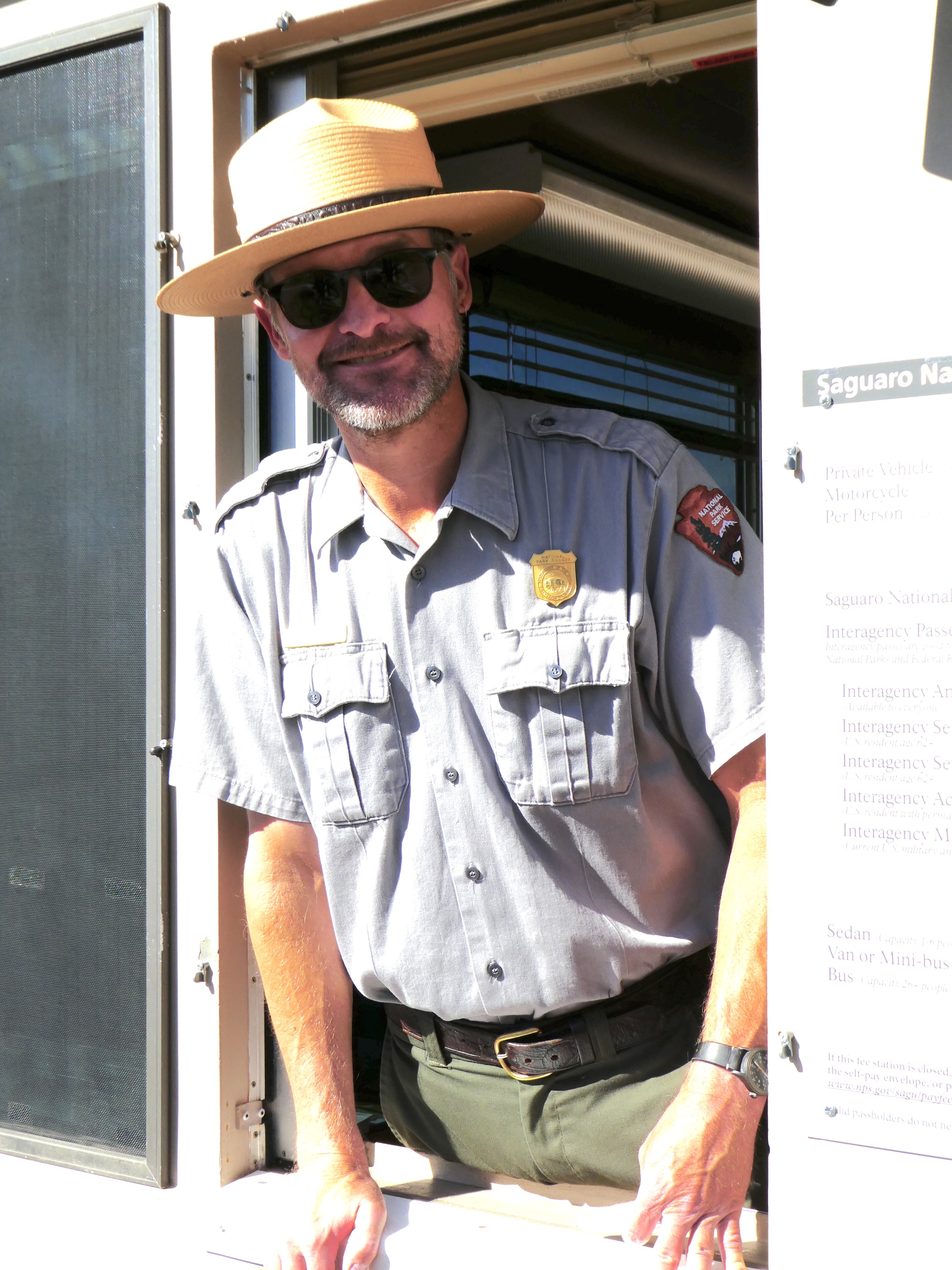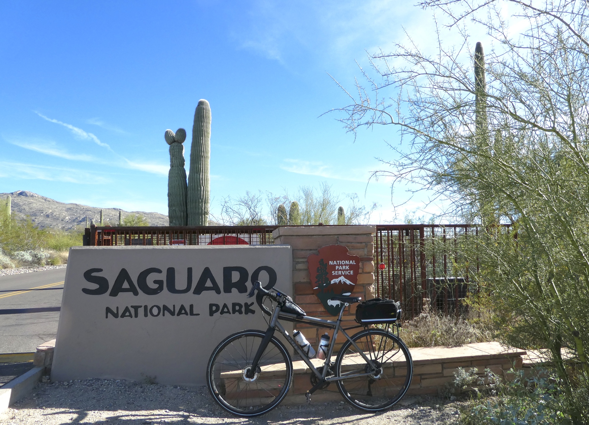 Our final stop before setting off on the loop ride through the park was paying the entrance fee. Rachael had Scott’s Lifetime Senior Pass, but Ranger Ted informed us that we each needed our own daily entrance pass, at a cost of $15 each. Then he offered a brilliant alternative - for $20, I could buy an Annual Senior Pass that was allowed entry of four bicycles at each of the US National Parks. Sold! Rachael and I passed through the gate with big smiles and were soon rolling up, down and around through the Sonoran Desert.
