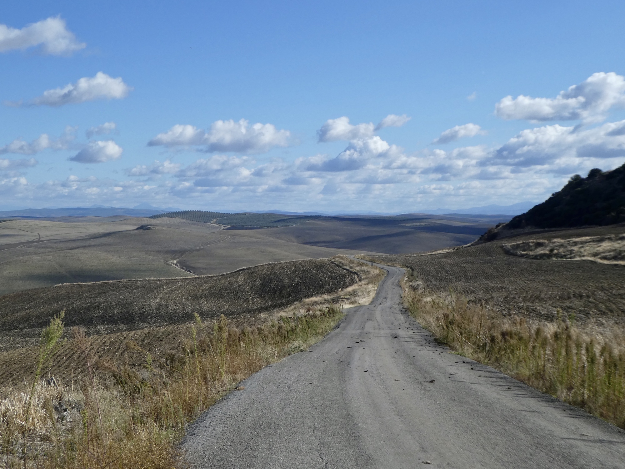 It’s an empty, quiet setting so I’m surprised when I see another biker overtaking me, traveling not much faster than myself. When he catches up we acknowlege each other, adjust our speeds to ride abreast, and start talking. He’s a young Black man traveling on a simple bike, not carrying much gear. I ask where he’s going - to his home, in the south. Where, exactly? Benin, Africa. Where did he begin? The north.