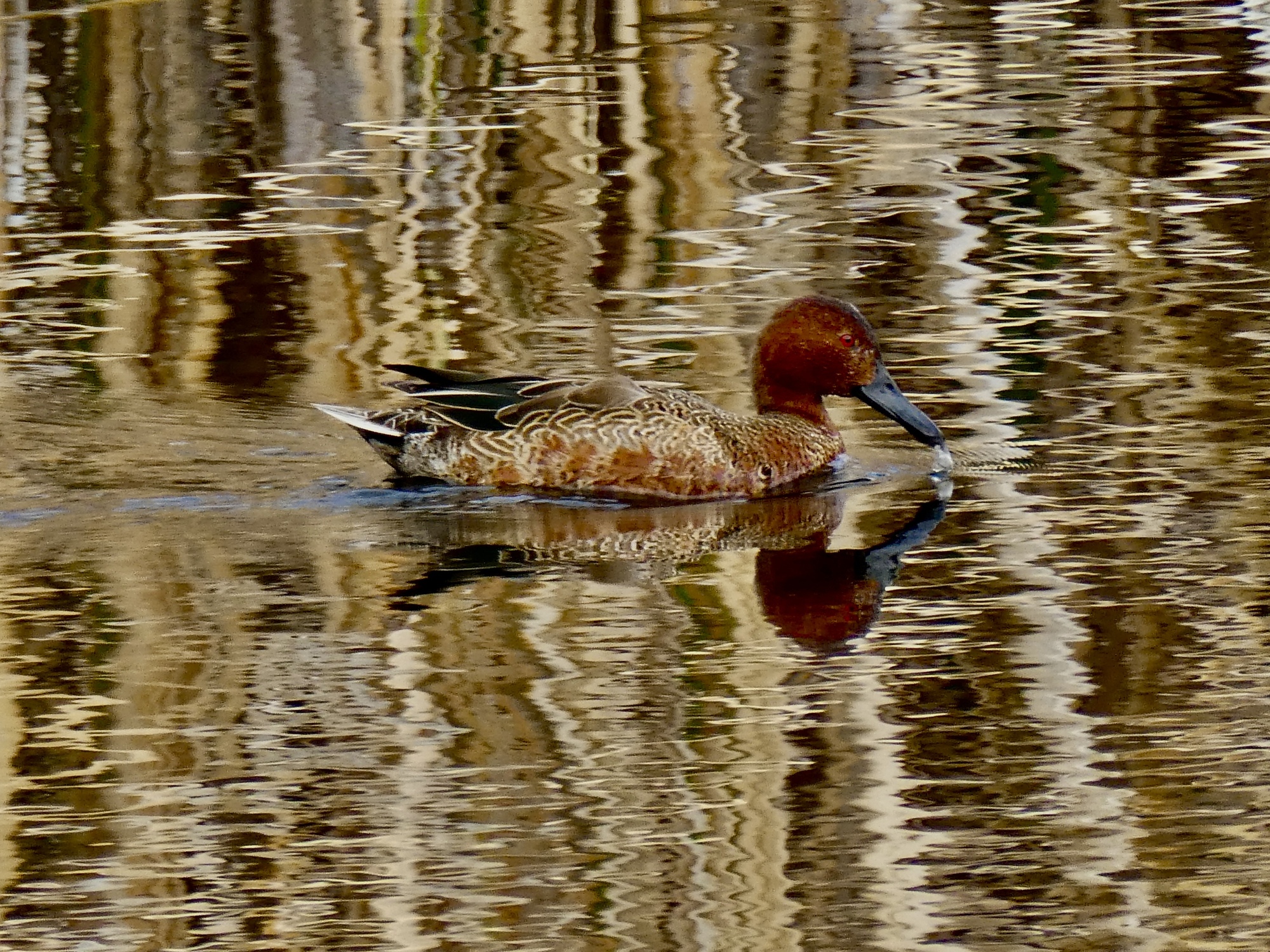 There are hardly any birds out at Sweetwater this morning. I see more folks slow-walking with cameras and scopes than birds, but there are a few surprises - and one I’m especially pleased to see, the first canvasback of the year. I’m not sure what he is when he first drifts around the corner and into view because his coloring is unusual, more mottled than he’d look in breeding season as I usually see them. It’s especially pleasing the way his pattern blends in with the reflections of the tall reeds surrounding the pond.