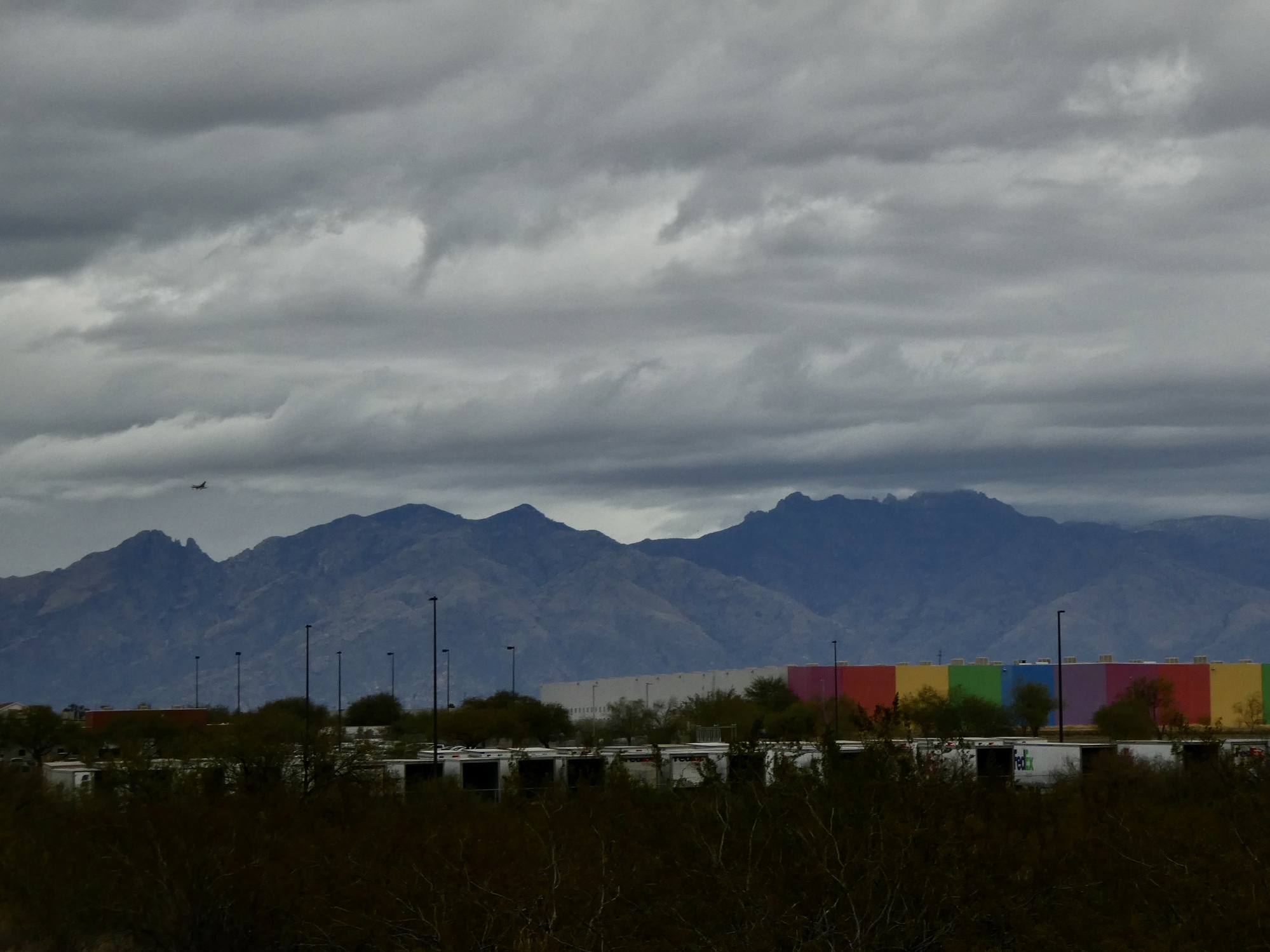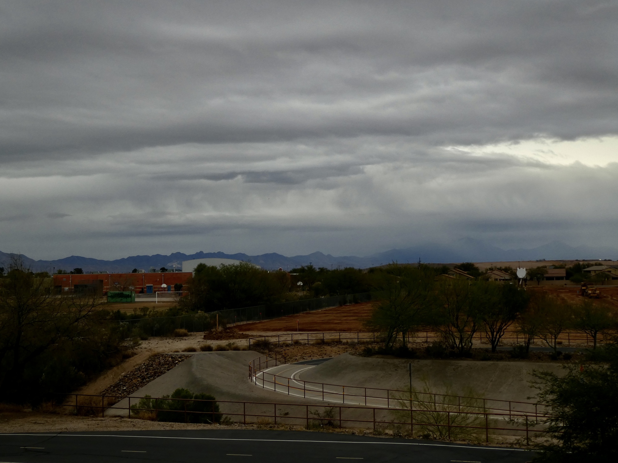The three of us took our parting shots and then Rachael left for a walk before the rains arrived while Susan and I loaded Vivien George into the back of the Raven and headed off for the Tucson airport. After dropping her off at the Departures curb, I looked around at the rapidly darkening sky and decided to take the long way home and stop off at a few spots for photos. It’s quite a dramatic change to the vistas we’ve enjoyed since our arrival.