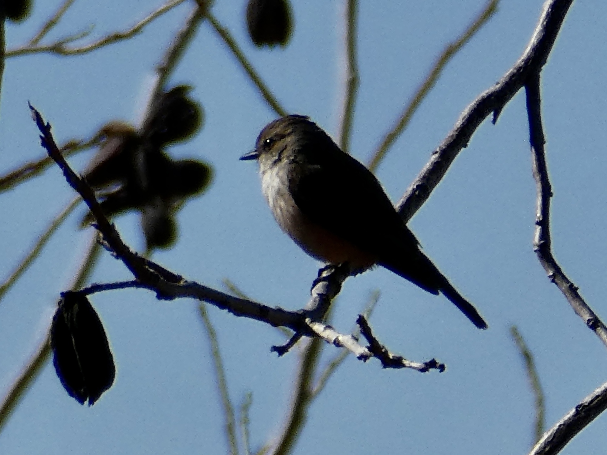 And it wasn’t the only new bird of the day. Not long after I stopped for that one another small bird flew in and I was pleased when I got home and saw it was a black phoebe.