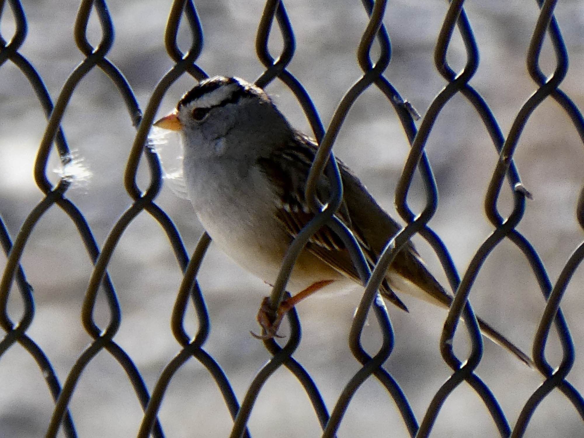 And today? Just another ride out to Marana during the warmest hours of the day - a very nice ride, but one we’ve already done at least three times this winter. Nothing new to show there, really. So I was warming to the idea that I could take a much needed blog break and give the tips of my poor index fingers some time off when I glimpsed a small bird fly in and alight on a chain link fence as I biked past. White-crowned sparrow! New bird! So of course I have to post it.