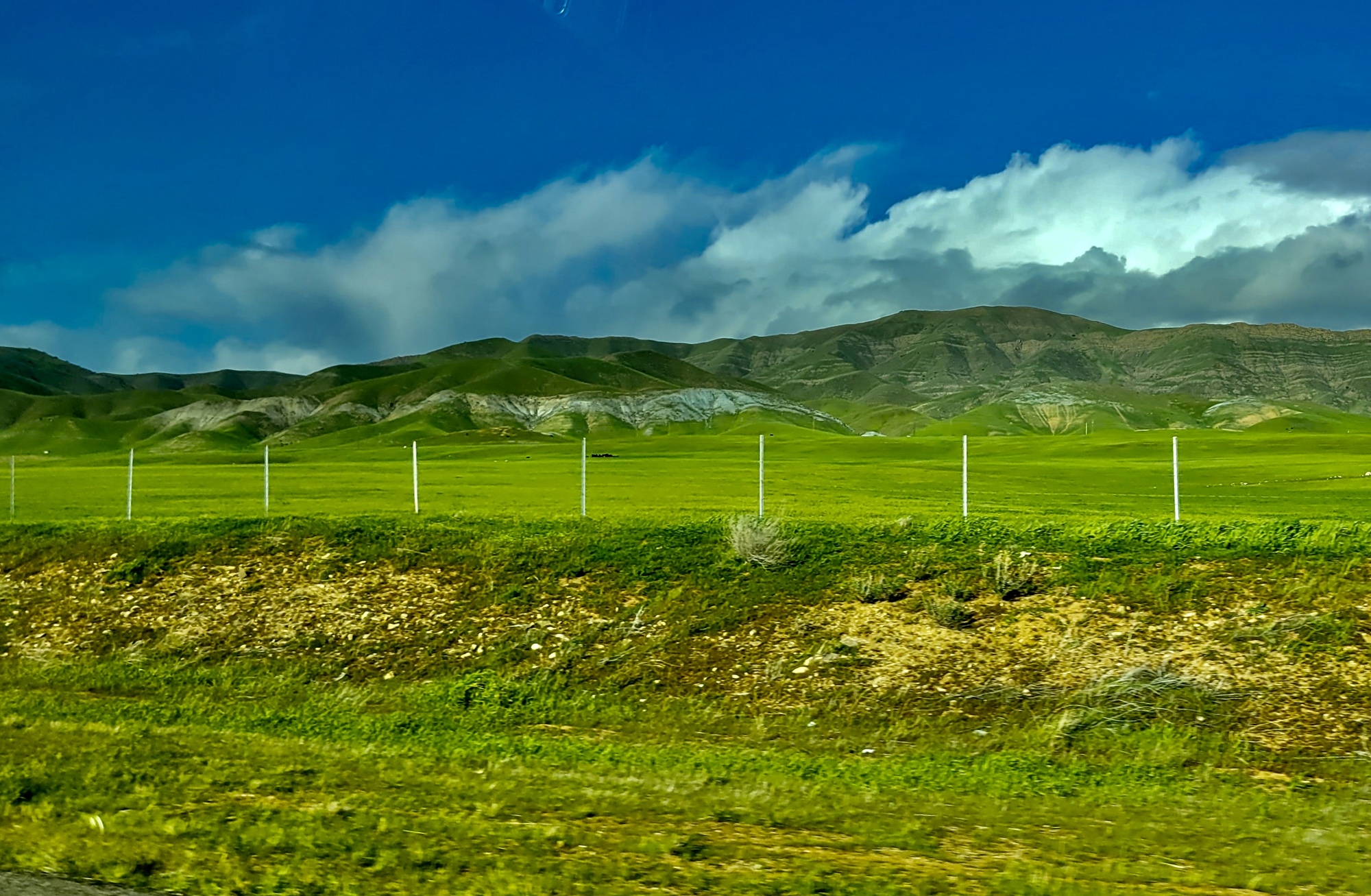 Leaving Bakersfield, we continue west and soon find ourselves on another stunner - SR46, the Paso Robles Highway. The eastern part of the route is maybe less interesting as it crosses the San Joaquin Valley with its alternating bands of orange and lemon groves, nodding donkeys and miles of nut orchards; but at its end we come to country we’re familiar with from our previous stays in Paso Robles - the stunning rounded, eroded hills east of that city, an astonishing emerald green today that reminds us of the Palouse, or Yorkshire.