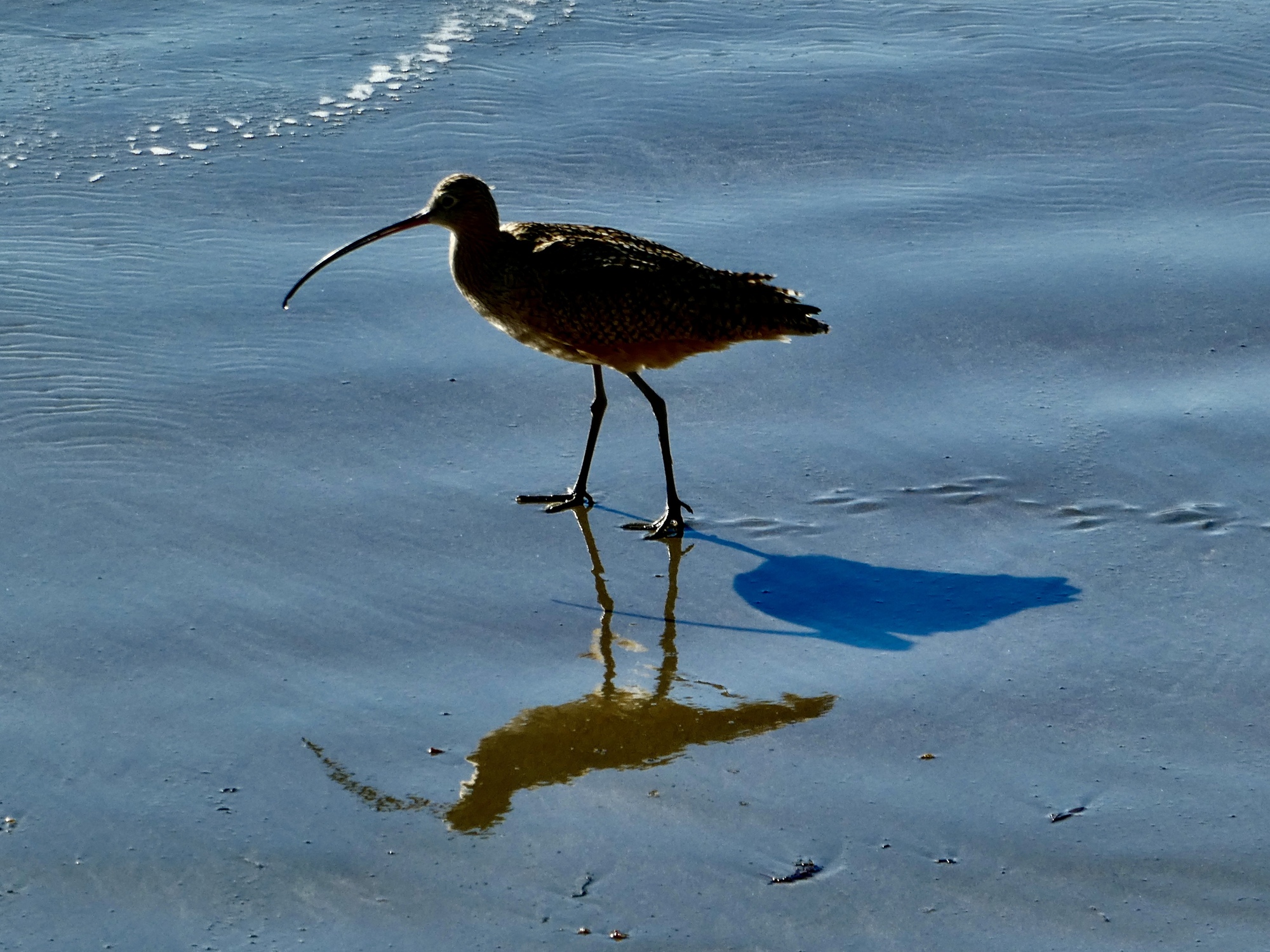 For myself, it was more of the same - short walks on gentle terrain, hoping to find a few more birds to add to the list. And I did find a few. I started by driving back to Morro Rock, feeling a little silly to be driving to a place that’s barely a mile away, and walking on the bay side of the rock this time. There aren’t too many birds around this morning - mostly just the usual Western gulls, white-capped sparrows, Brewers blackbirds, and a half dozen vultures swirling around and coming to rest on the crags near the top of the big rock. There is a charming flock of tiny, twittering Bushtits that flit by, and our old friend the Brandt’s cormorant that we got to know earlier in the tour at La Jolla. And the rarely seen triple-curlew. That’s about it though, and so after a half hour I shuffle back to the Raven and move on to try my luck elsewhere.
