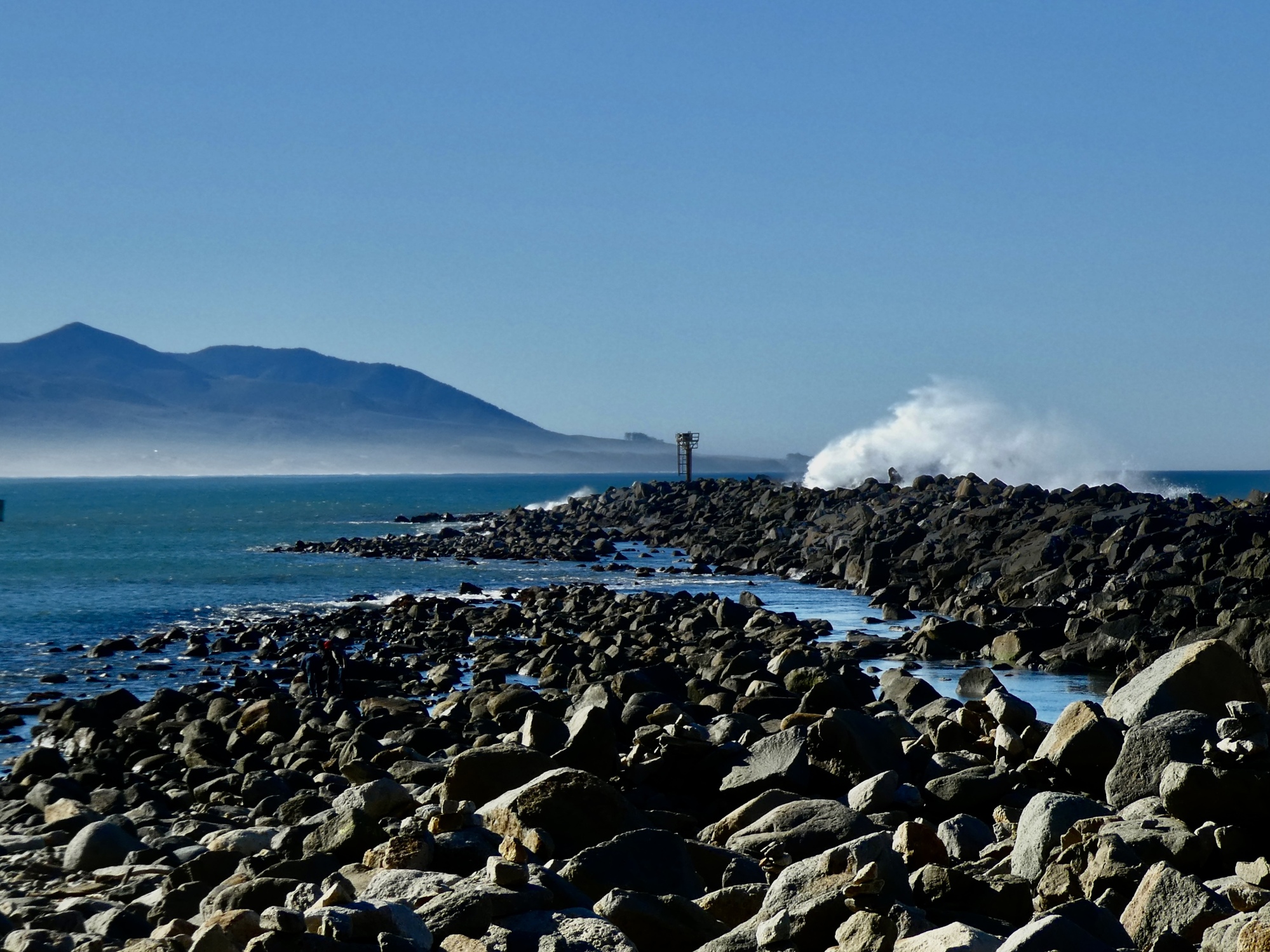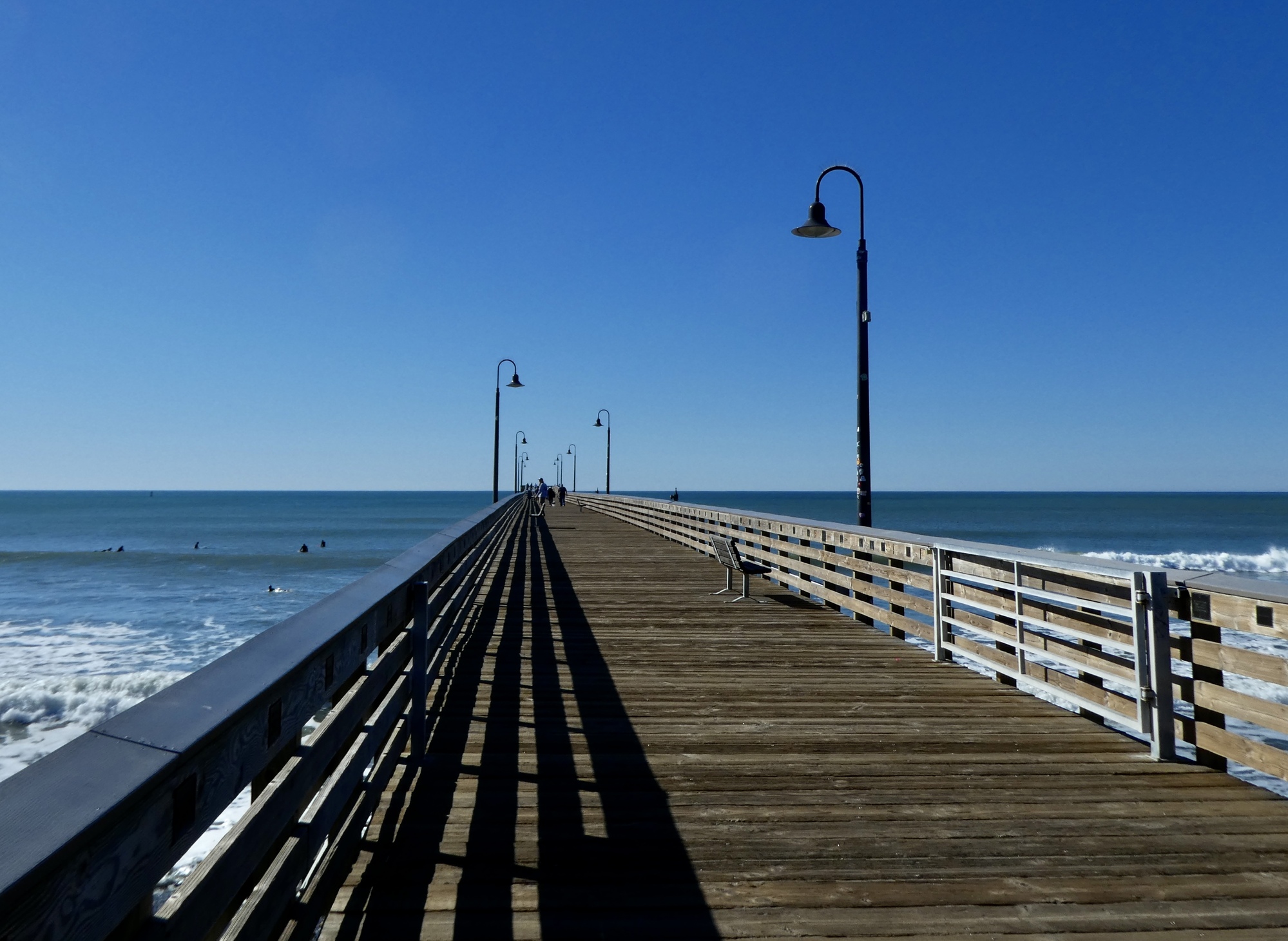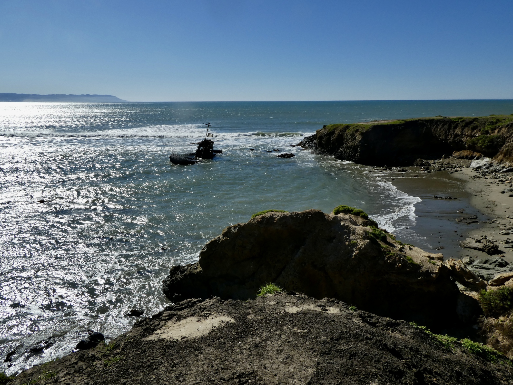 I haven’t been up north yet, so I stare at the map and see a small park about five miles away just north of Cayucos that appears to have a cliff-top trail along a rocky shoreline. It might be a good spot for seeing an oyster catcher or surfbird, or maybe some terns or pelicans. So I drive out there next, stopping on the way to check out the long pier at Cayucos.
