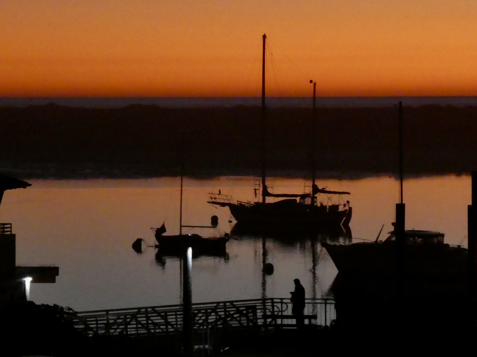 Rachael has returned from her hike in the meantime, and soon after I return myself we drive the long two blocks to Dorn’s Breakers Cafe, where we end the day alternately looking at each other’s photos, plates of blackened salmon and snapper, and the developing sunset. Very nice.