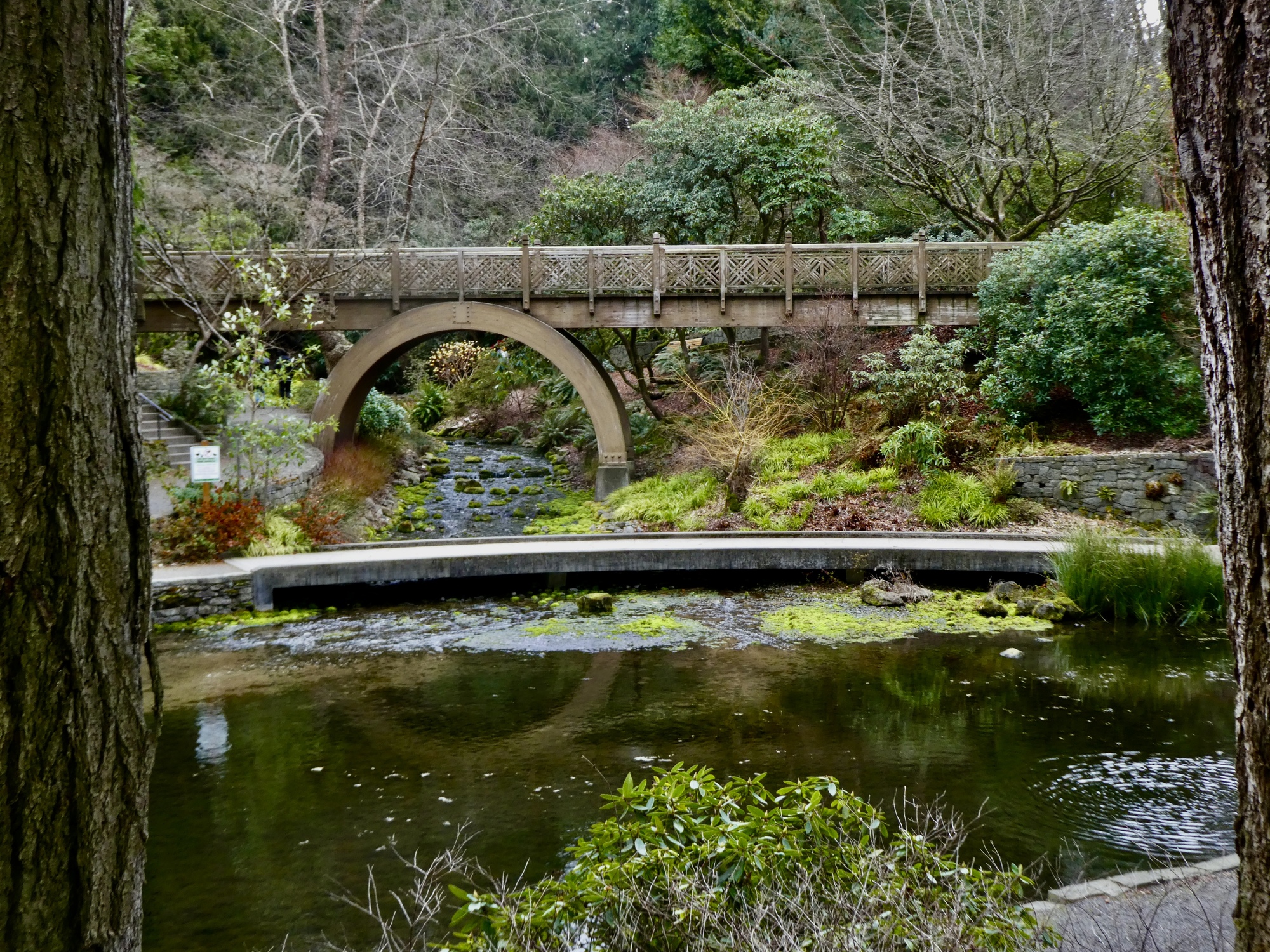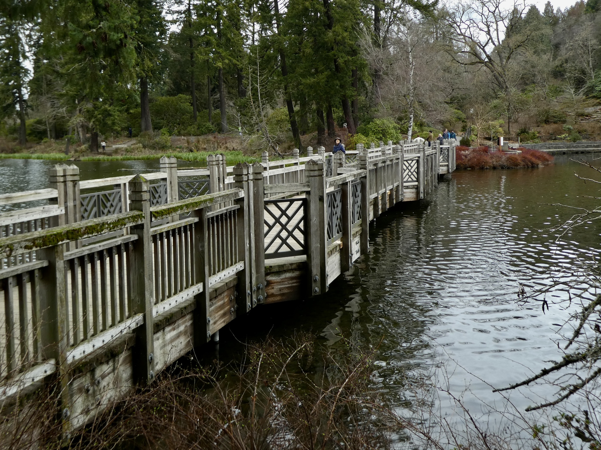 Elizabeth’s right - it is a beautiful place. None of the rhododendrons are in bloom yet of course, but impressive rhododendrons are everywhere lining the network of foot paths that surround Crystal Springs Lake. And it’s not just the rhodies either. There are impressive trees and shrubs, a pair of scenic wooden bridges, a small waterfall, some early bloomers, and lovely sight lines across the lake.