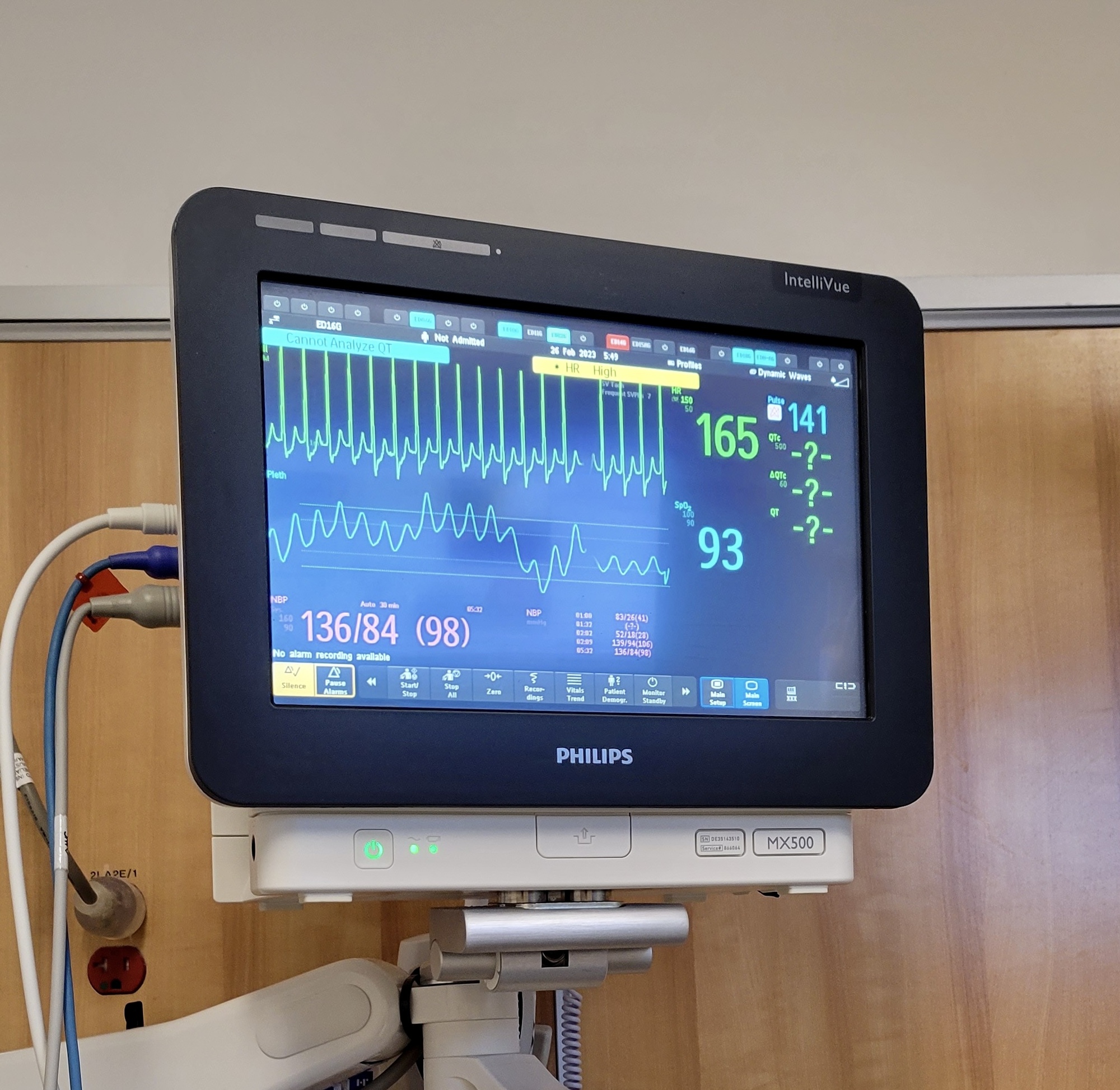 Our experience at the ER room was outstanding, considering. Everyone was so nice! We were lucky to arrive just at the right time, and at first we’re the only patients. Within five minutes of arrival they’d taken my vital signs (173 bpm) and had me on my back strapping me up for an EKG and dripping an IV into my arm.