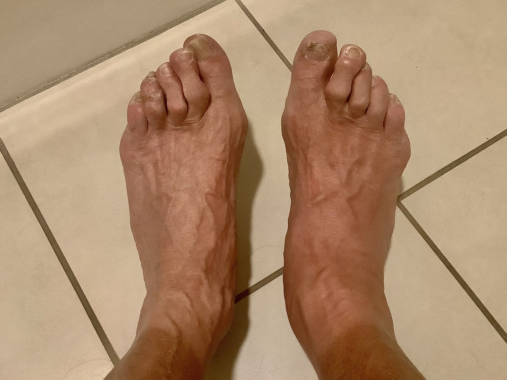 I lie there for a minute assessing how I feel, and find I like the results. I feel good, actually. I’ve had the best night’s sleep in a week, my head’s clear, my pulse feels regular and totally normal. Good news. A few minutes later I step out of the shower, admire my size twelves, and like what I’m seeing down there too. I can confidently step into and out of the tub without holding on to the wall, and the feet nearly match again. The right one is starting to show attractive bone and vein lines, full of character, no longer smooth and boring like I’ve been treating it with botox.