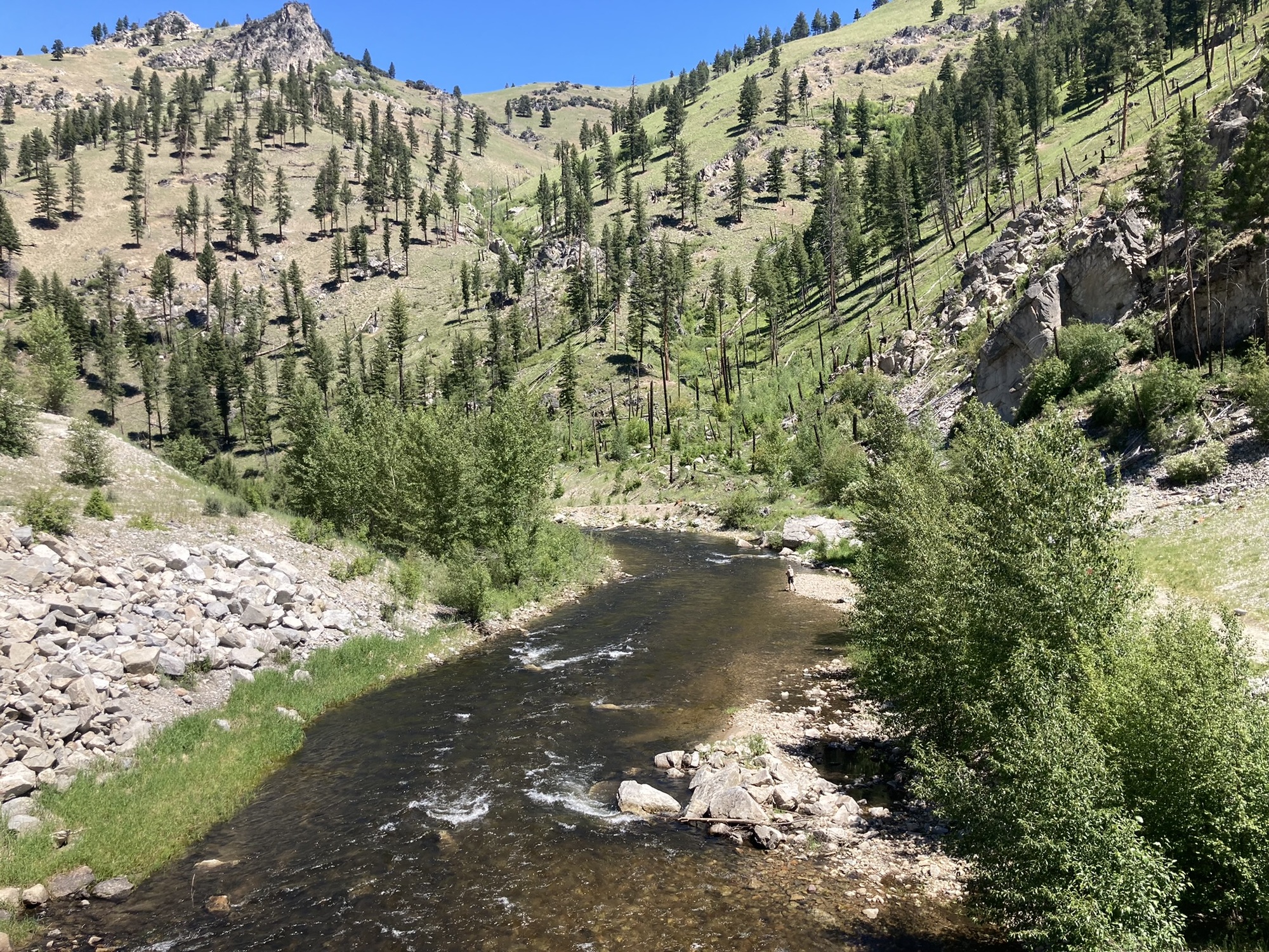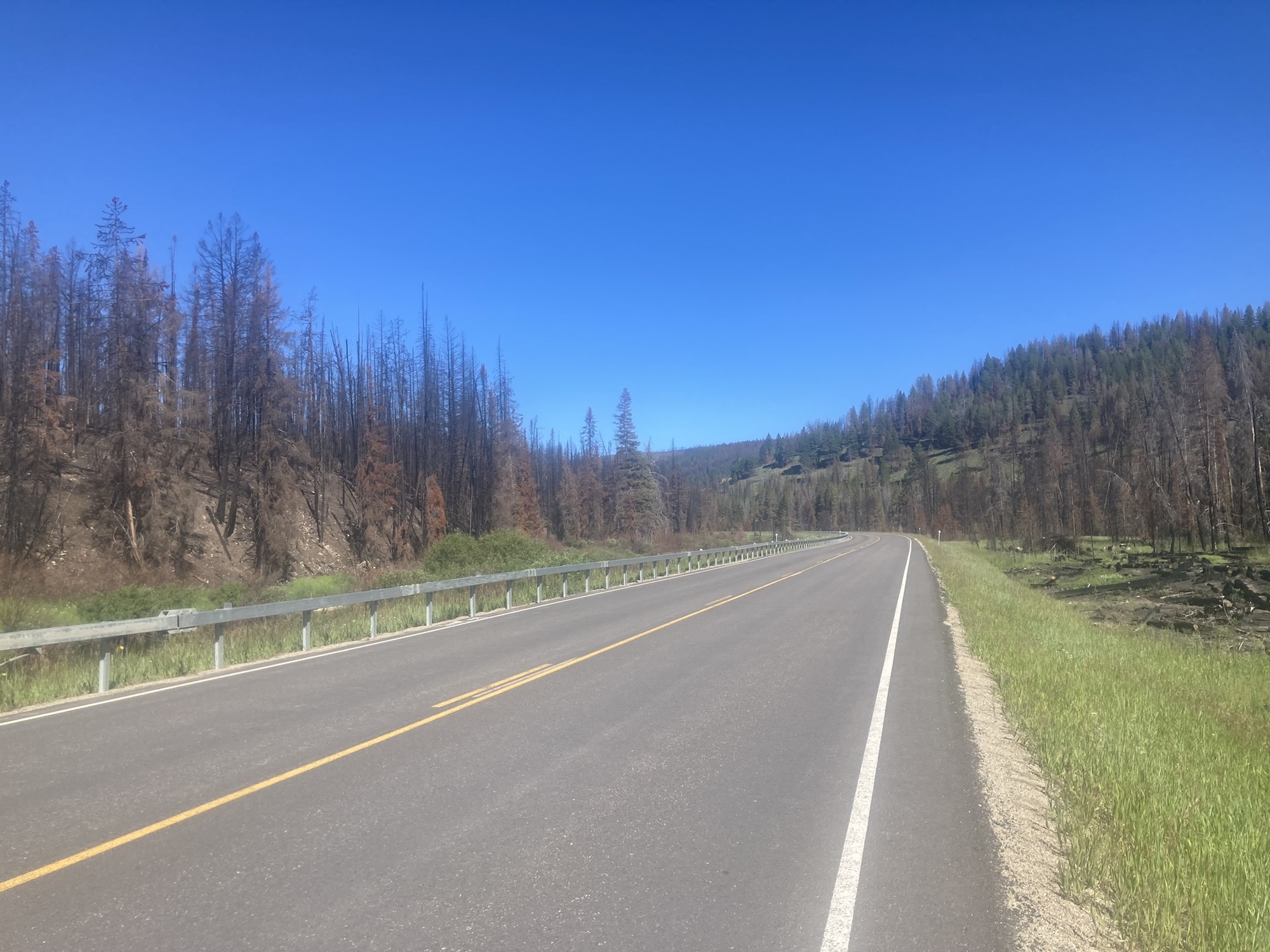 I met up with Cheryl briefly at the Big Hole National Battlefield where the excellent displays help tell the story of this tragic event. I shoved on as the road followed a gentle grade up Trail Creek toward Chief Joseph Pass. The lower section of the road passed through an area that burned just last year.