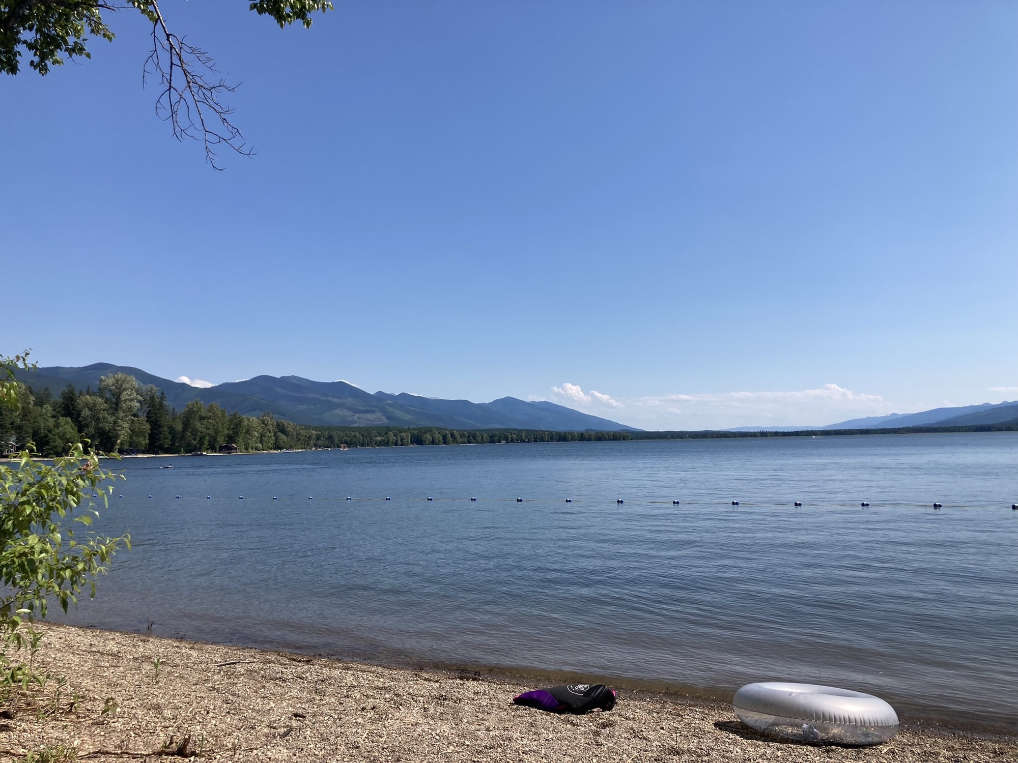 After being spoiled by the wide shoulder on Rte 200, the narrow strip on Rte 83 was disappointing. It would continue that way off and on all the way to Bigfork. We ended the day at Seeley Lake with ice cream from “The Ice Cream Place.” From there, Cheryl drove me up to our camp near Swan Lake where I took a plunge in the cool, refreshing water!