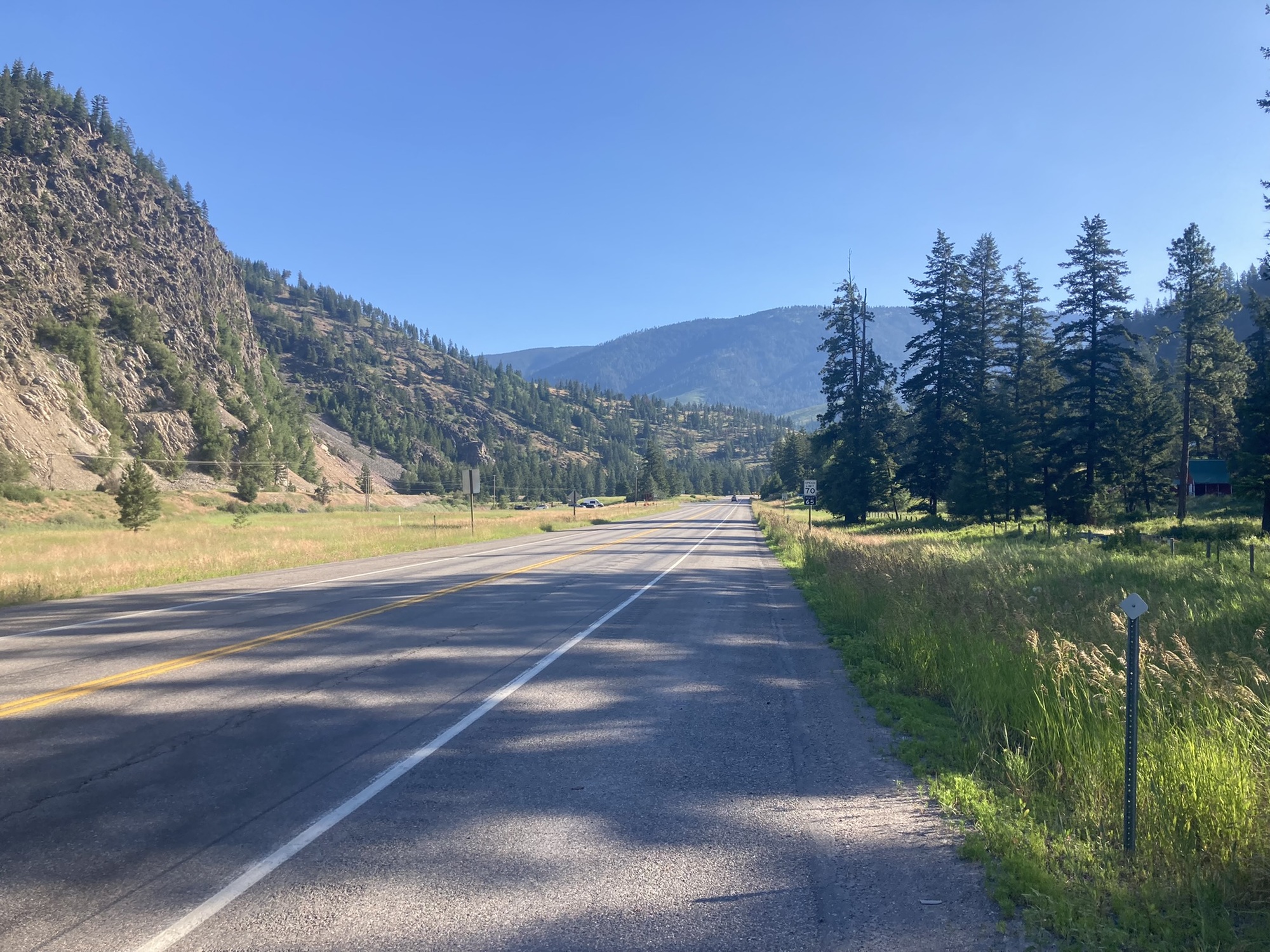After a great rest day in Missoula (thanks Derric and Irma!) I headed out in the cool morning set on getting to Seeley Lake. After navigating through the east part of town, the congested road abated, and I rode on the wide shoulder of Rte 200 following the Blackfoot River. Most of the route presented a gentle uphill grade with one significant climb.