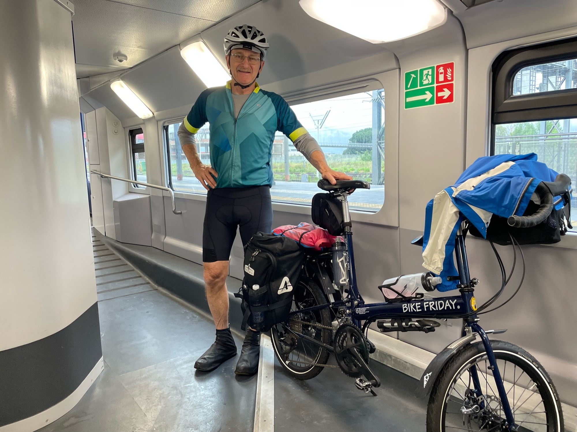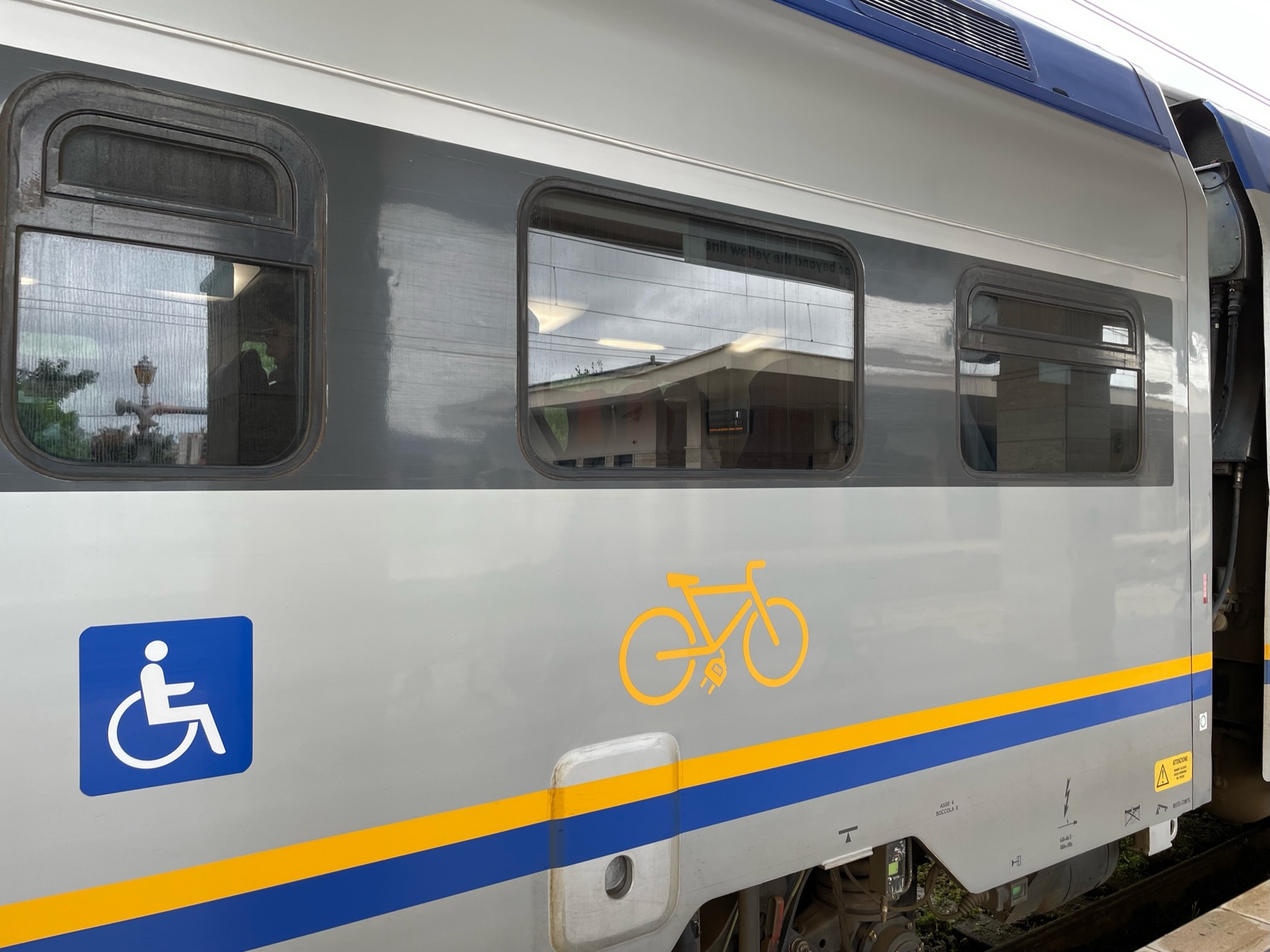 I was thanking my lucky stars for all the pushups and one armed rows I have done in our online fitness classes because we had to hump our loaded bikes up more stairs today. This time, it a set of stairs to exit the station and another to get to binario #4. Just kid’s play this time. That's when we realized that we had neglected to validate the tickets, so David raced back to do this. In the meantime the binario was change to number 5.