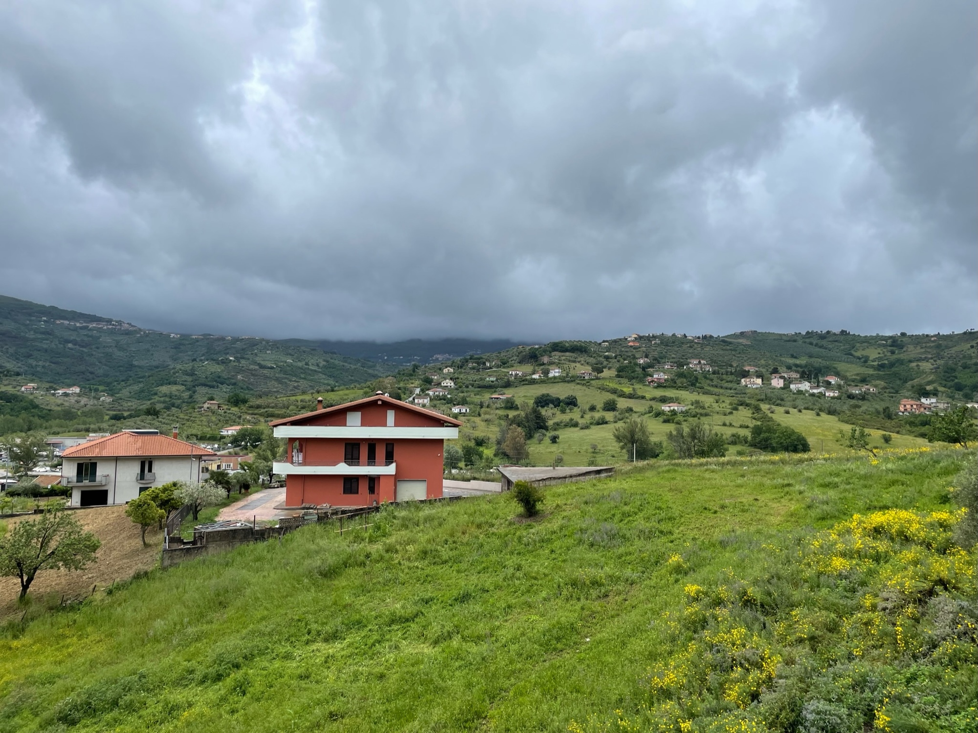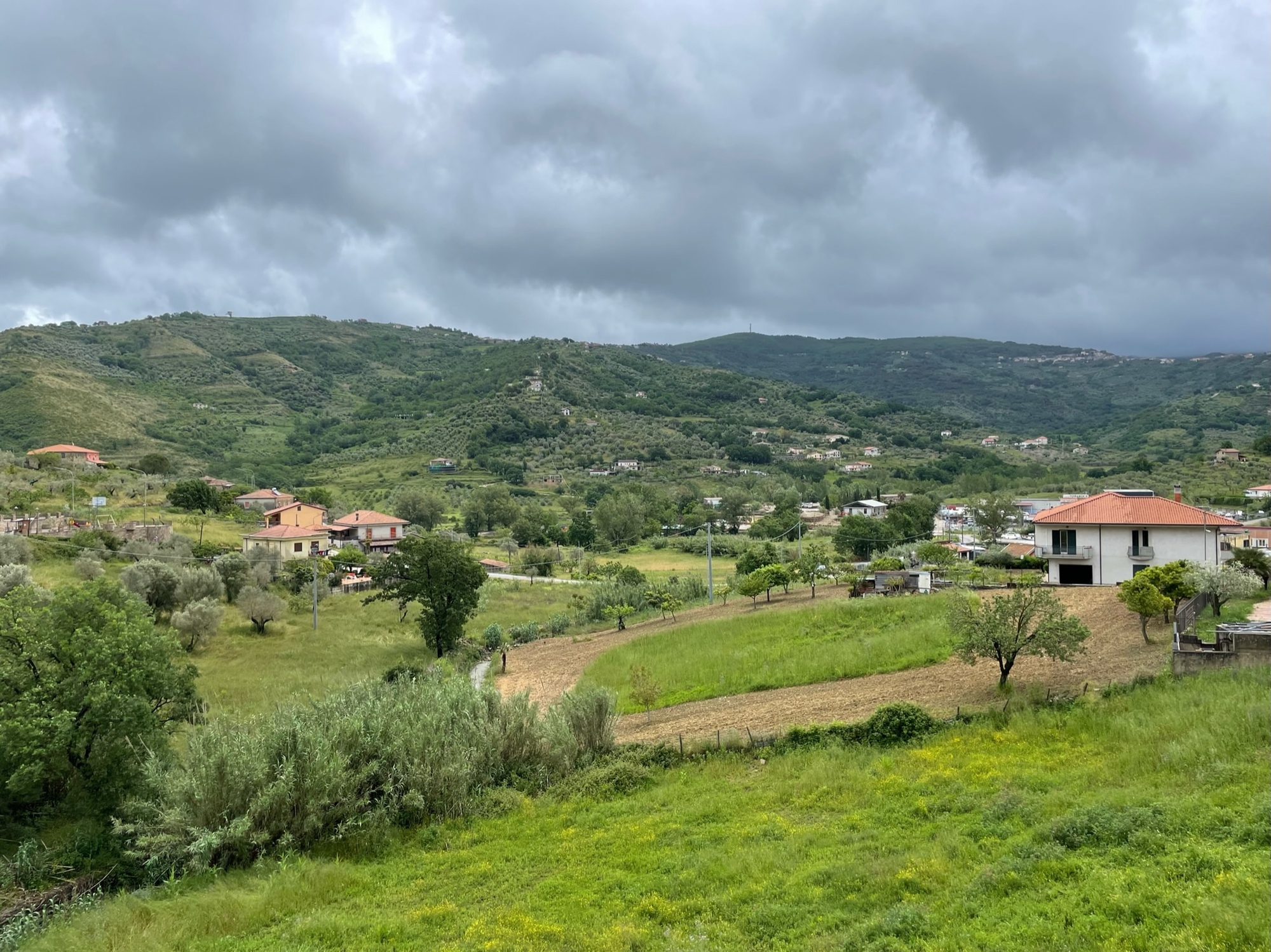 In just 30 mintes the train arrived at Agropoli. Along the way we passed through a successive rain squalls but these had dropped off by the time we rode out from the staion. We visited the main town square for a coffee at a place with a large awning, before setting off for Santa Maria de Castellabate. There, the sky opened again and again but we eventually made the break and headed for the hills.