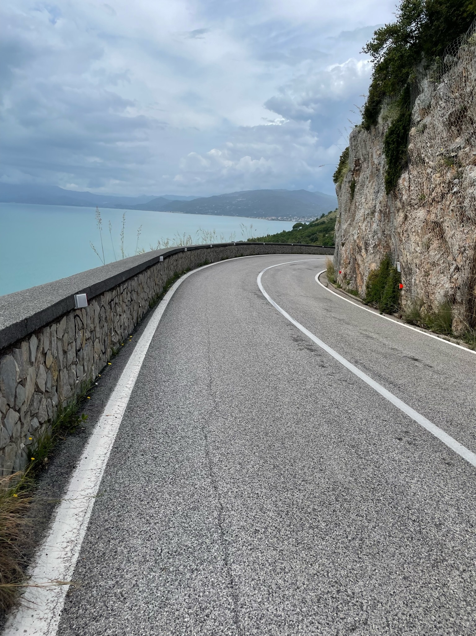 Eventually, we crested the top of the hill and started the descent to Policastro on the coast. The shoulder disappeared and our speed maxed out. It took complete focus to hold our lines on the narrow shoulder. Several sections of the highway were elevated on enormous concrete struts and it was a long way down!