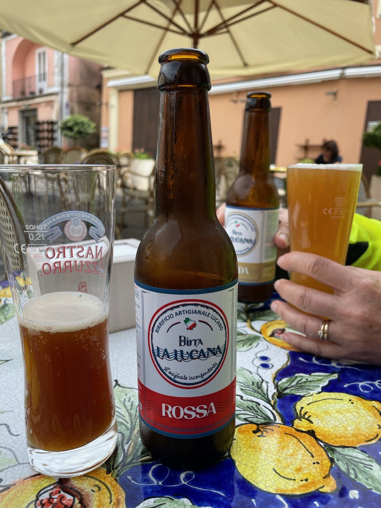 We rode steadily uphill to the old town and when we arrived, we pulled in to a cafe for a panini lunch and a beer in the main piazza.