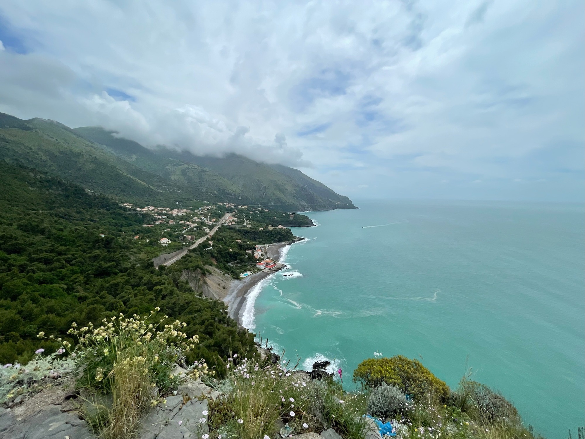 We carried on along the coast road, passing through Sapri. From there, another rugged climb ensued.