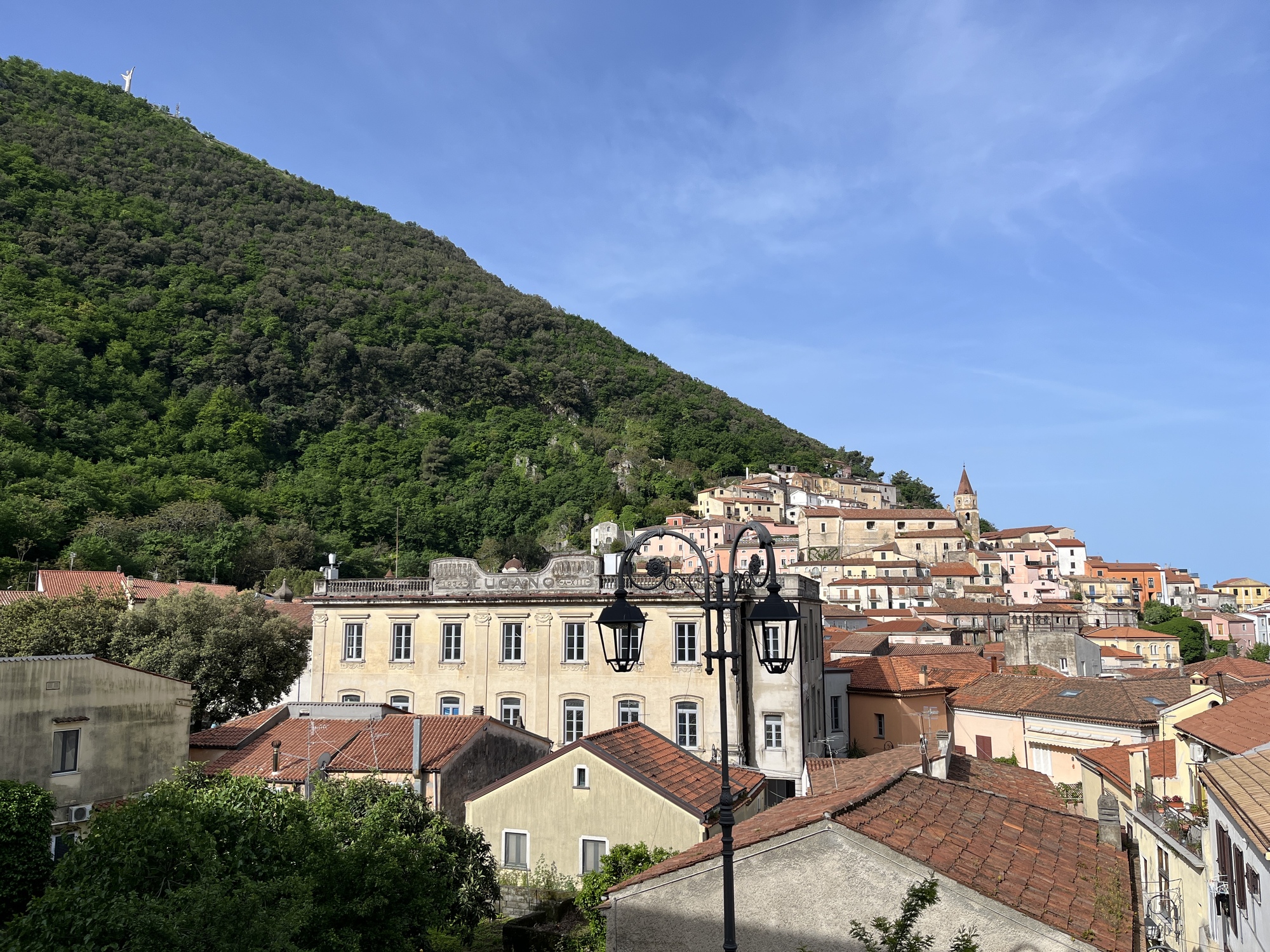 We cruised in to Scalea and easily found our B&B. Hooray for that. Our host was not responding to any messages so we decided to stop for a panini lunch at a Sicilian restaurant on the pedestrian mall nearby. A fellow diner came and chatted with us and told us we wouldn’t do any better in Scalea than to eat at this very restaurant. She and her husband have moved here from Texas and call in on this restaurant regularly.