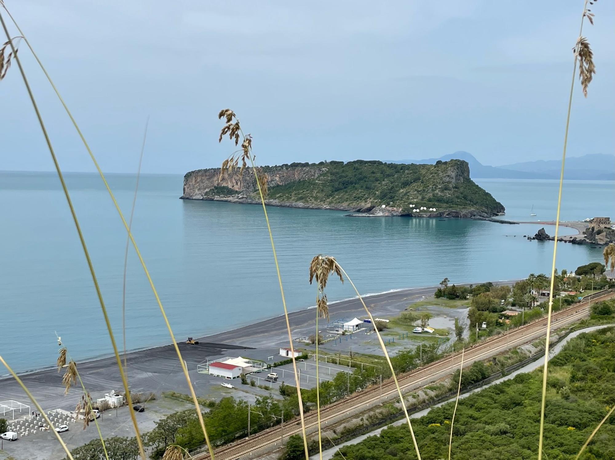 It was an 8 minute train ride to Praia a Mare, where we exited the train and headed straight for the shoreline. From all appearances, this town is a summer playland for families. There are campgrounds all along the lungomare and crews were busy erecting cabanas where beach goers will hang out to drink and eat and enjoy themselves. We mused about the mobile sauna owner who could not even park his vehicle at Willows beach this spring even though people were loving it after their icy cold dips.