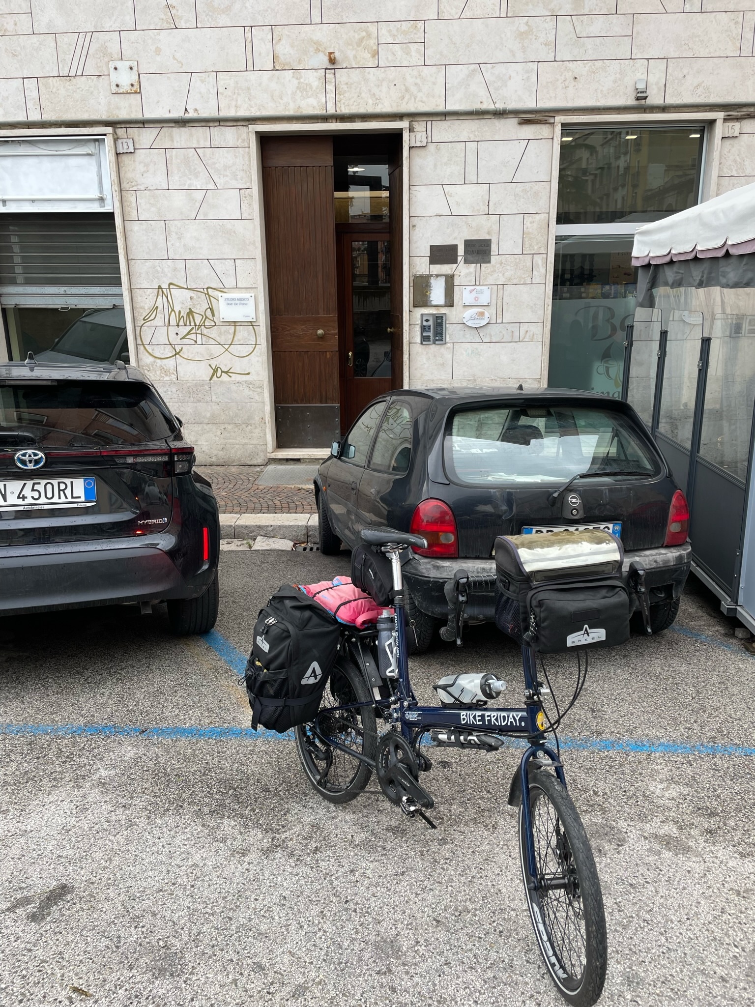 I had planned a straightforward route to get us out of out of Potenza, but after a missed turn, we were in the thick of the morning traffic. We stopped multiple times to check our location and occasionally backtracked to stay on course.