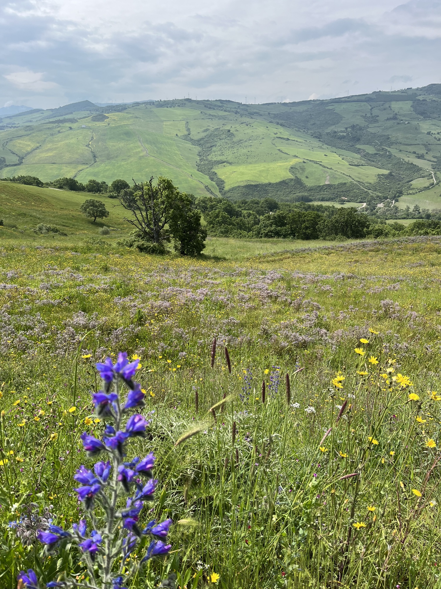 As we gained elevation, farms gave way to forests of mainly oak trees. The birds were making a racket, so I pulled out the Merlin app to identify them. We were being serenaded by European robins, Eurasian blackcaps, Eurasian wrens and Eurasian blue tits, plus a few others. At one point, an enormous kite flew overhead as it scoured the field for its lunch.