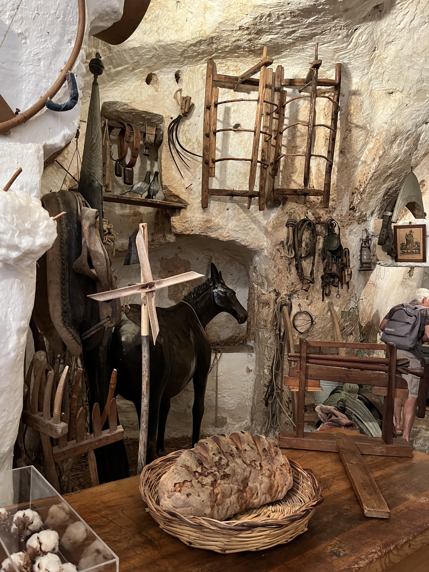 One of the caves houses a museum showing how a typical family lived up to 1952, when the city was de-populated. There was a family of 11 plus a horse living in this particular cave. This reproduction is exactly as it was in 1952.