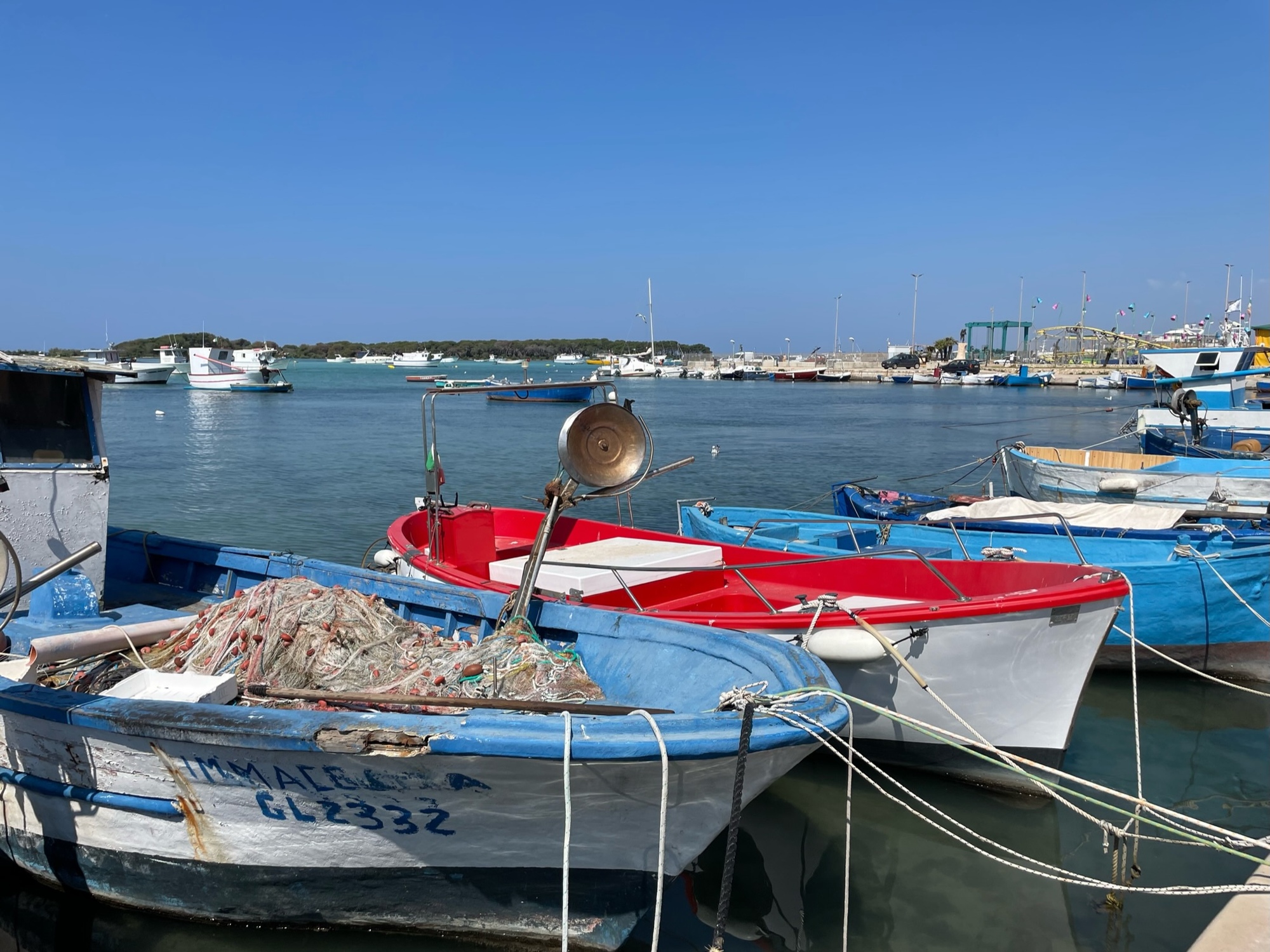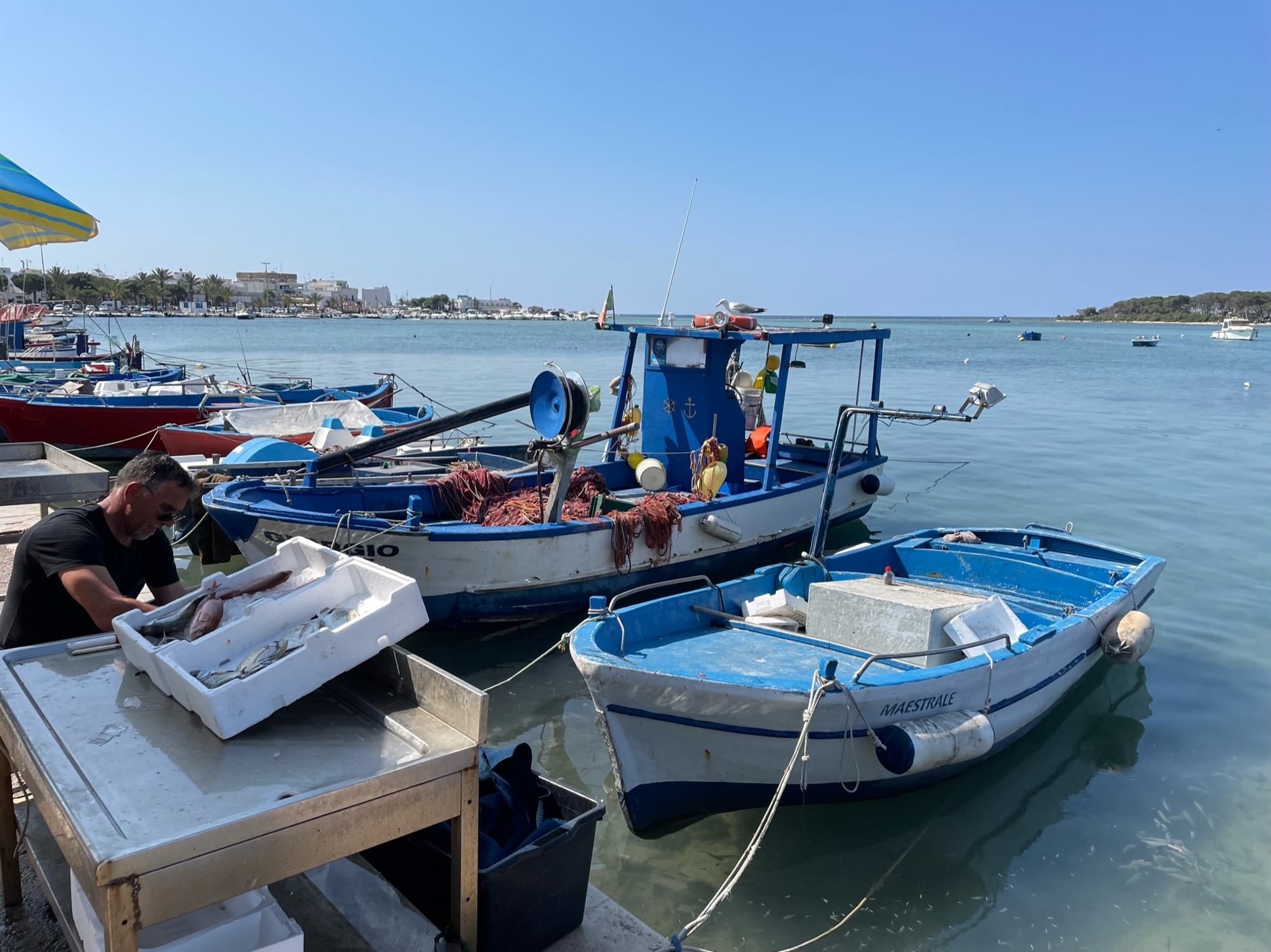 We set off from the B&B and headed to the shoreline to begin our leisurely 36k coastal ride to Gallipoli. The fishermen had been out and we stopped to watch one of them clean some red mullets for a waiting customer (a bag of fish for 5 euro). The fish innerds we're gobbled up by the small fish who swarmed the morsels as they hit the water.